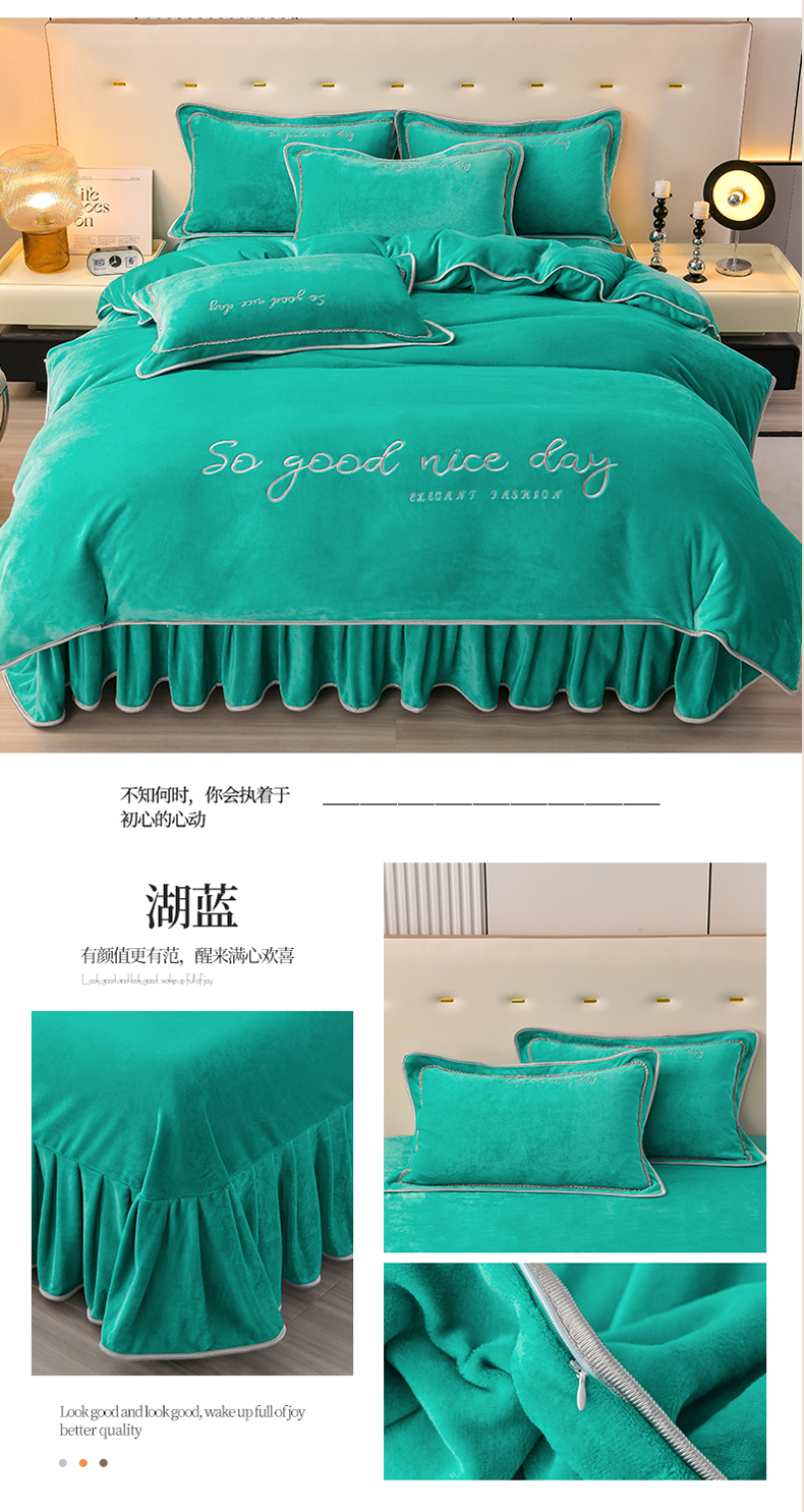 当前位置: 91家纺网 > 商品网购 > 床品套件 > 四件套 > 牛奶绒四件套 > 居尚家纺 2025新款AB款加厚纯色牛奶绒绣花四件套 湖蓝