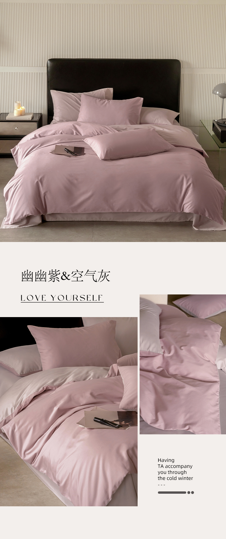 当前位置: 91家纺网 > 商品网购 > 床品套件 > 四件套 > 普通磨毛四件套 > 云栖家居 2024全棉A类磨毛四件套 幽幽紫&空气灰