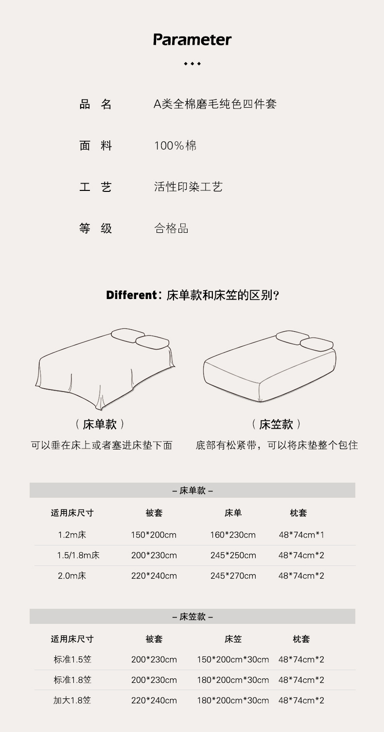 1.8m加大床笠款四件套 | ¥185.00 |