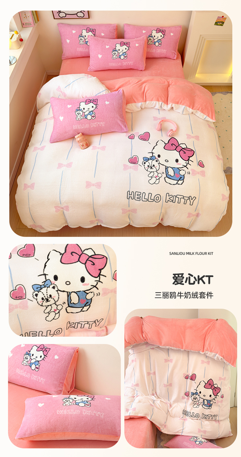 当前位置: 91家纺网 > 商品网购 > 床品套件 > 四件套 > 牛奶绒四件套 > 孩子王家纺 2024新款正版授权三丽鸥库洛米大版卡通学生宿舍双面加厚牛奶绒系列四件套--提供买家秀 爱心kt