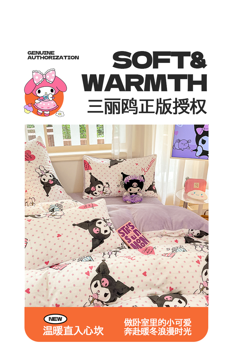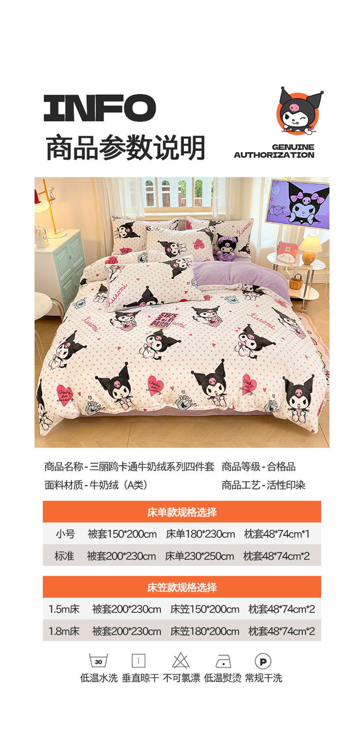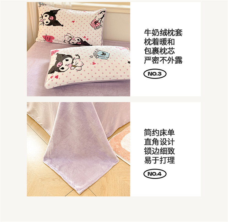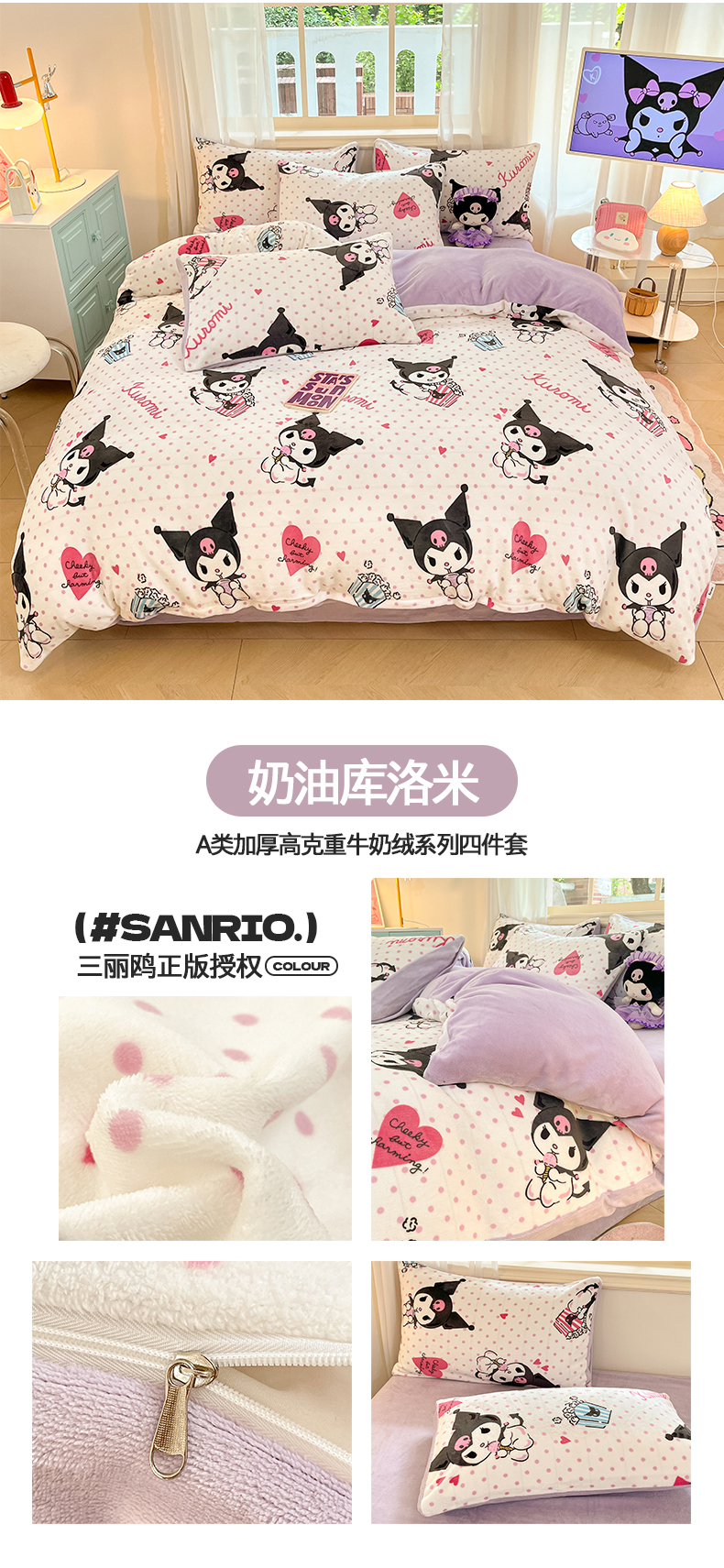 当前位置: 91家纺网 > 商品网购 > 床品套件 > 四件套 > 牛奶绒四件套 > 2024新品正版三丽鸥授权卡通加厚高克重牛奶绒系列四件套 绒三丽鸥-奶油库洛米