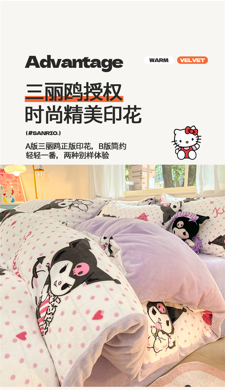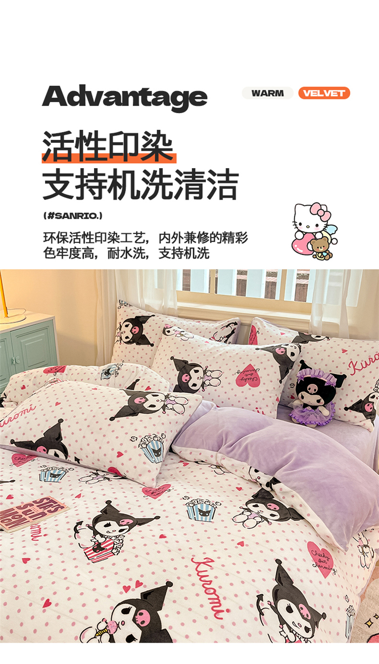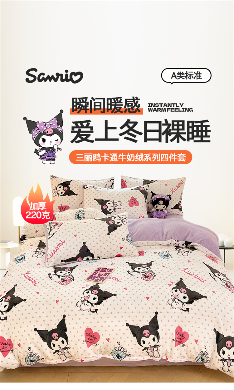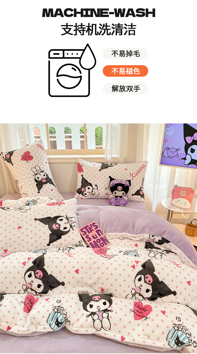 当前位置: 91家纺网 > 商品网购 > 床品套件 > 四件套 > 牛奶绒四件套 > 2024新品正版三丽鸥授权卡通加厚高克重牛奶绒系列四件套 绒三丽鸥-奶油库洛米