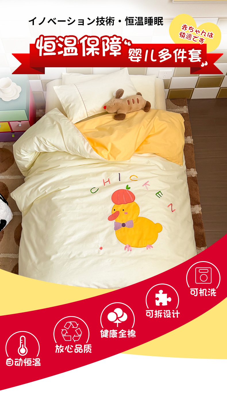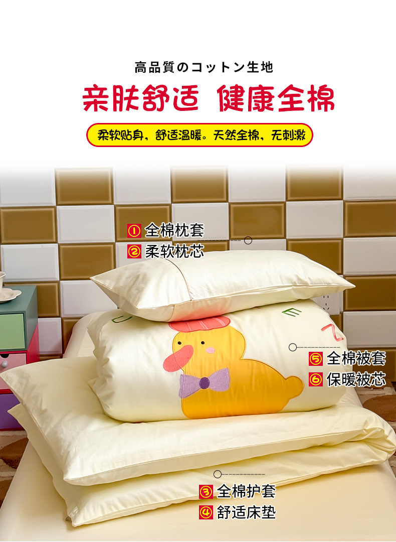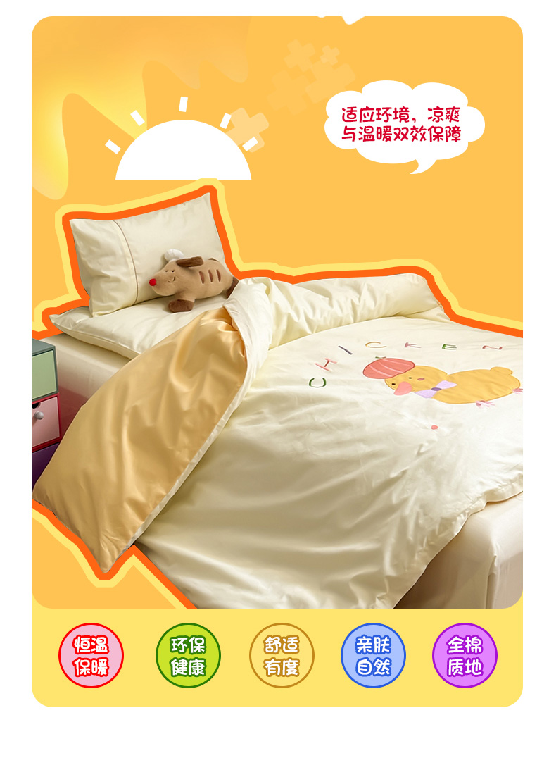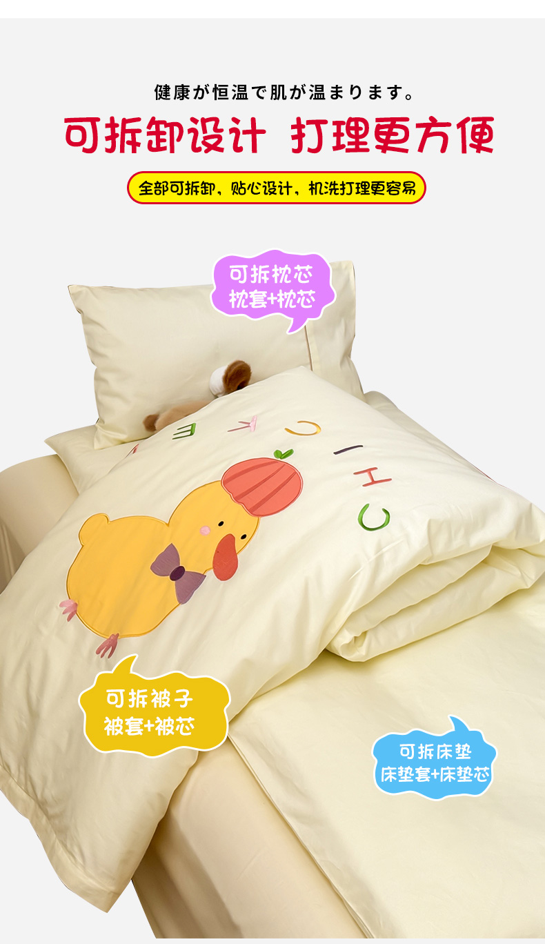 当前位置: 91家纺网 > 商品网购 > 床品套件 > 三件套 > 喜多兔 2024新款快乐多巴胺纯棉绣花幼儿园被子三件套 黄色彩虹小鸭子