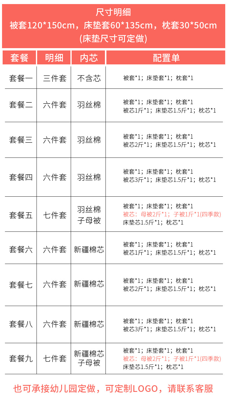 2斤+1斤羽丝棉内胆7件套- | ¥135.00 |