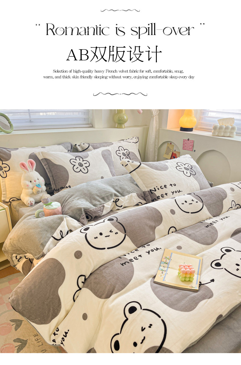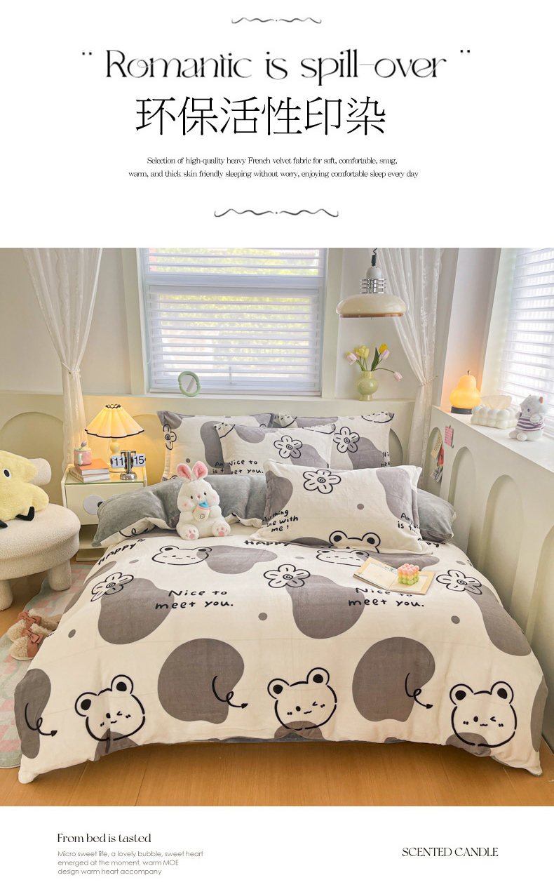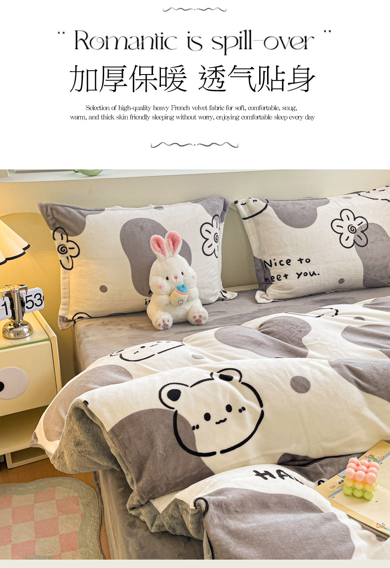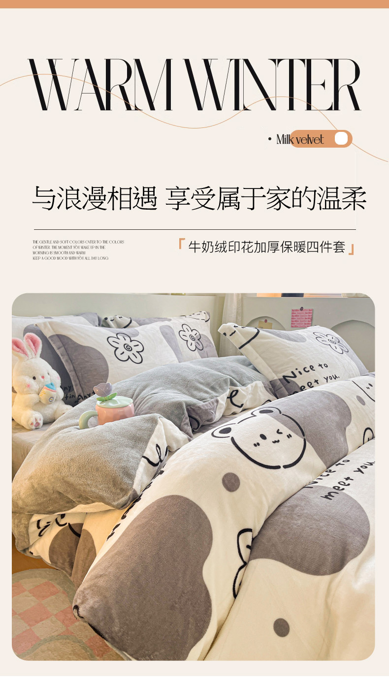 当前位置: 91家纺网 > 商品网购 > 床品套件 > 四件套 > 牛奶绒四件套 > 2024新款小清新牛奶绒高克重加厚保暖四件套 斑点熊