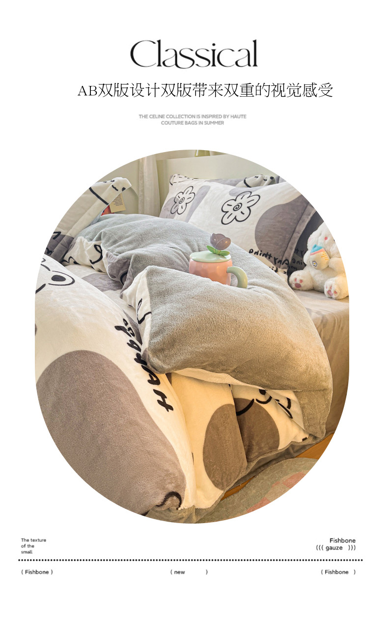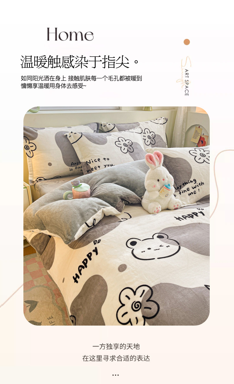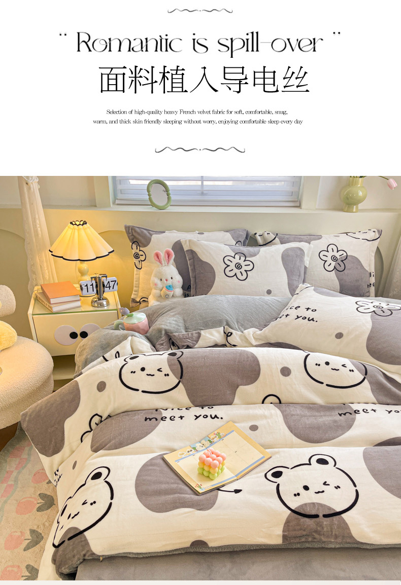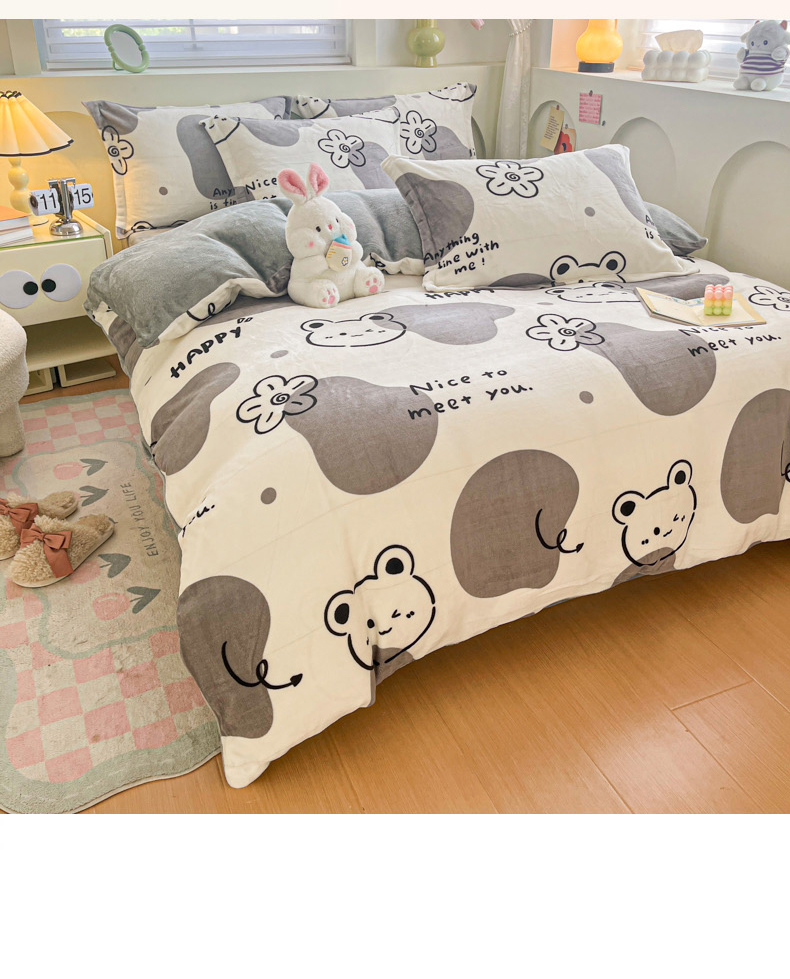 当前位置: 91家纺网 > 商品网购 > 床品套件 > 四件套 > 牛奶绒四件套 > 2024新款小清新牛奶绒高克重加厚保暖四件套 斑点熊