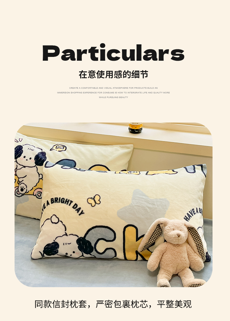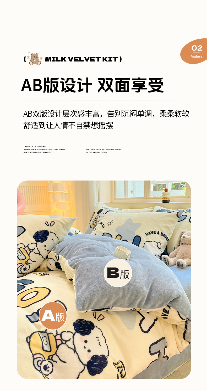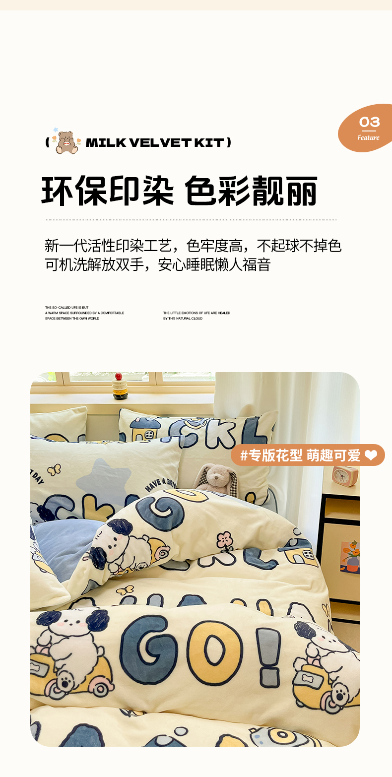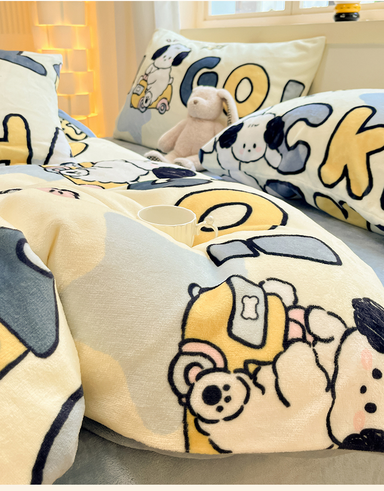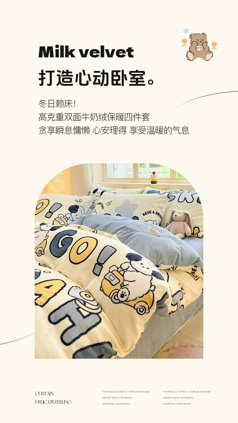 商品名称:铭宣家居 2024新款7斤小清新高克重牛奶绒印花四件套床单床笠款 字母狗