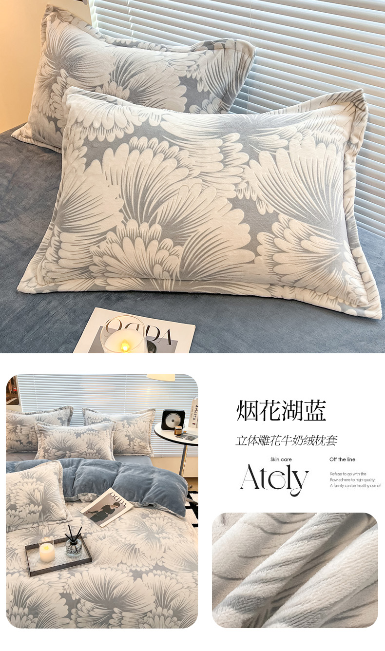商品名称:2024新款A类高克重立体浮雕牛奶绒加厚保暖系列-枕套 宛然蓝色