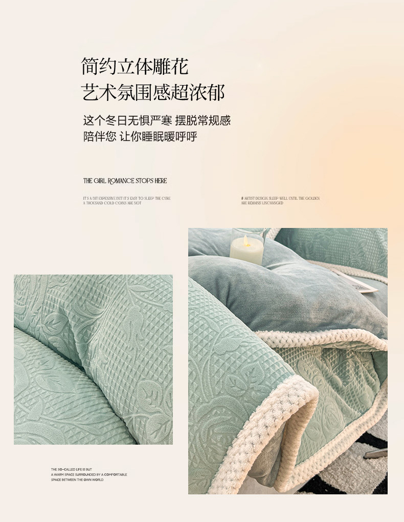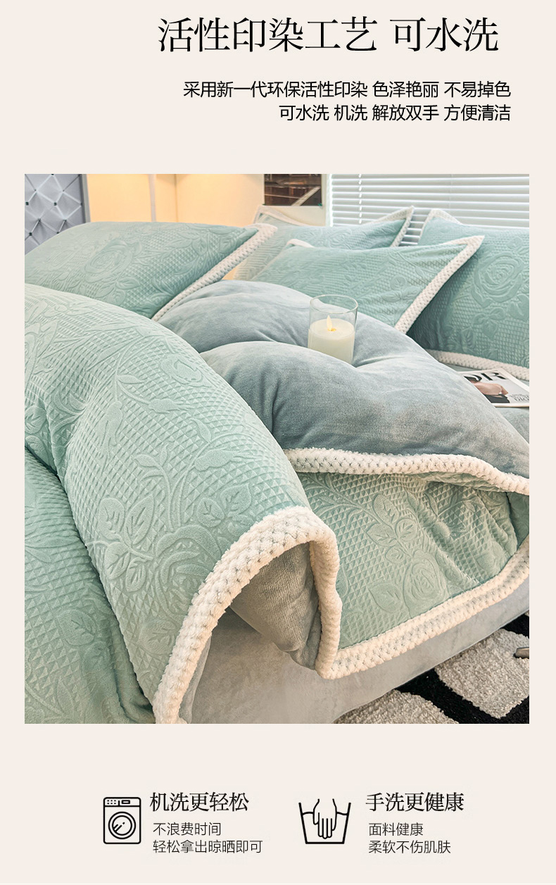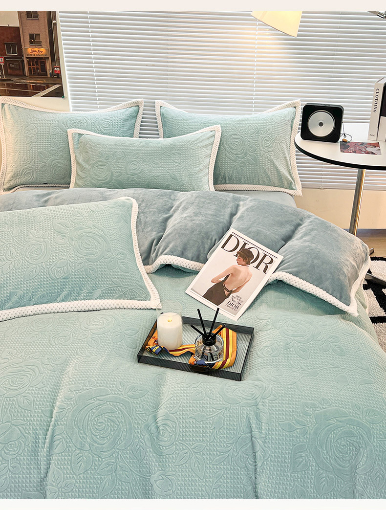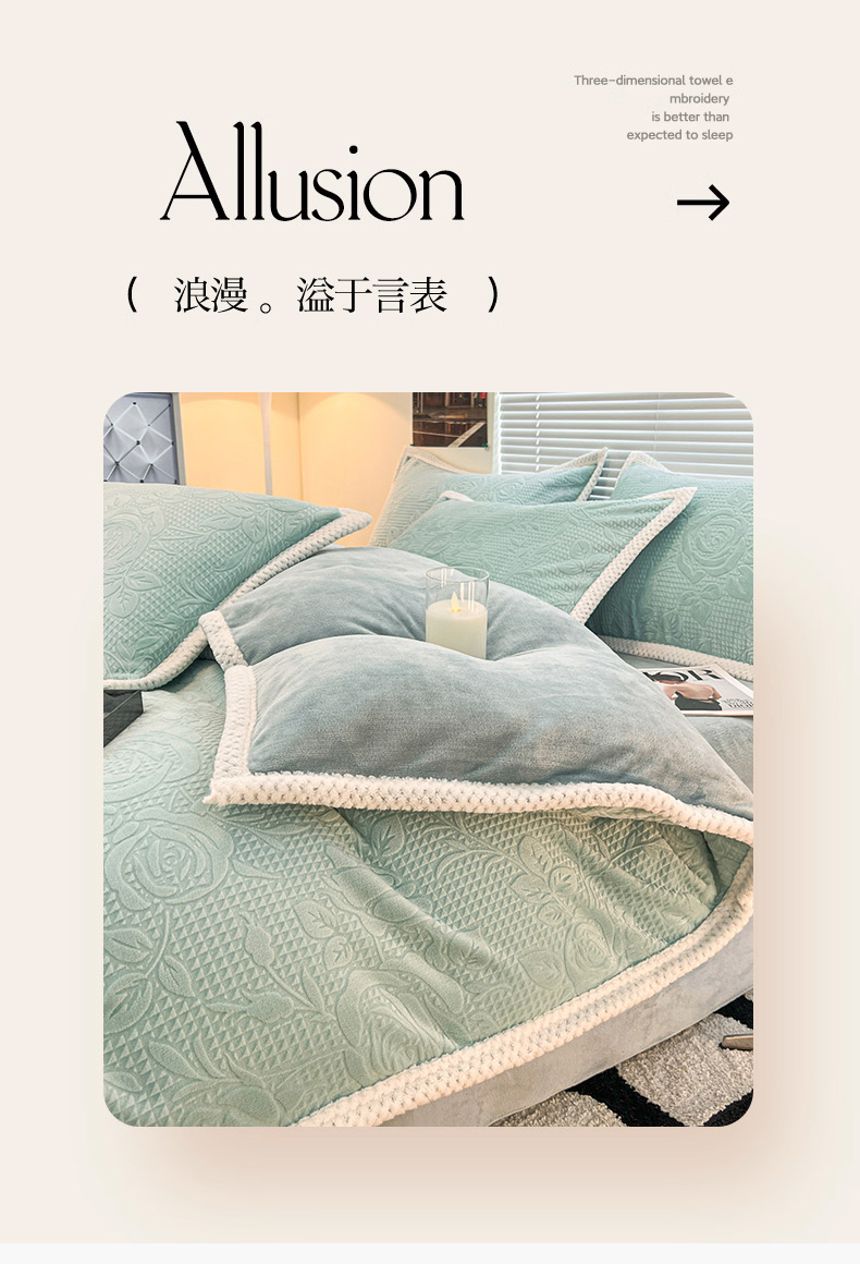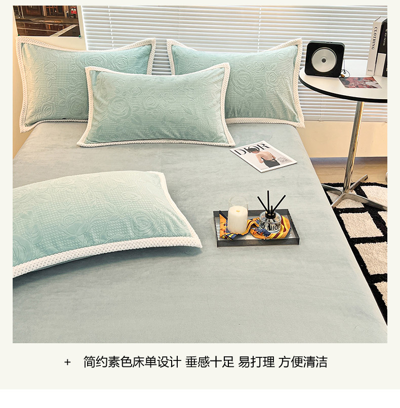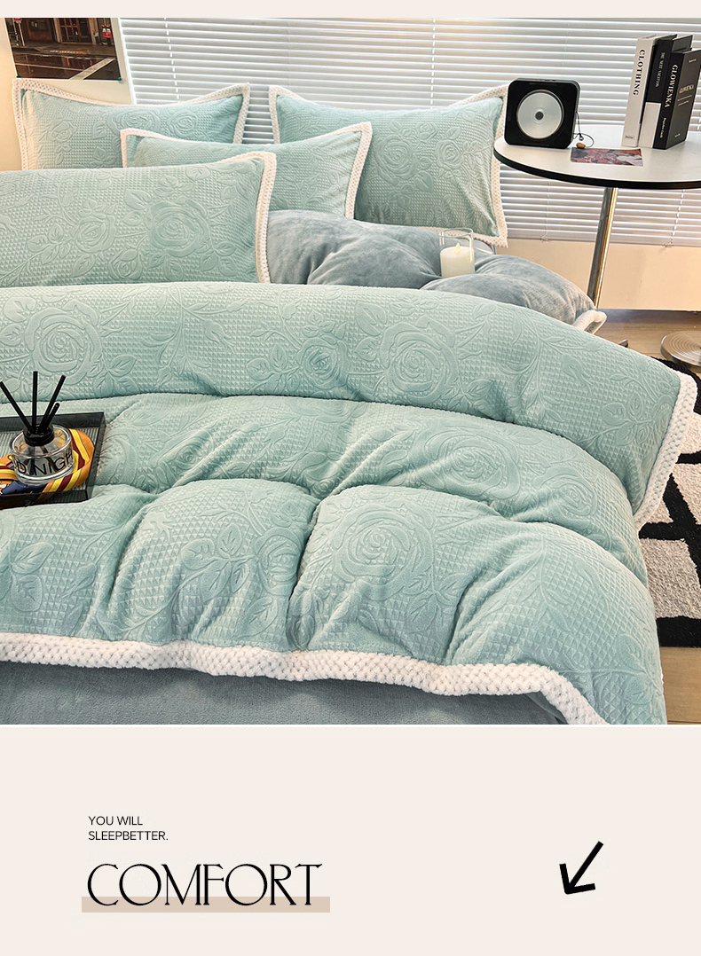 当前位置: 91家纺网 > 商品网购 > 床品套件 > 四件套 > 牛奶绒四件套 > 2024新款A类高克重3D立体雕花牛奶绒保暖系列套件单品-四件套 玫瑰恋情蓝
