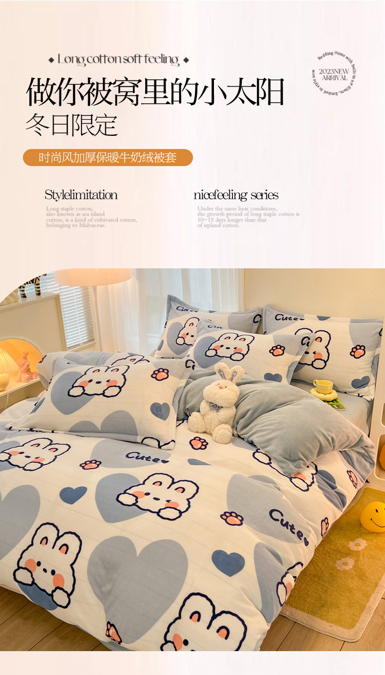 (总)2024新款A类高克重时尚风牛奶绒加厚保暖系列套件单品-被套