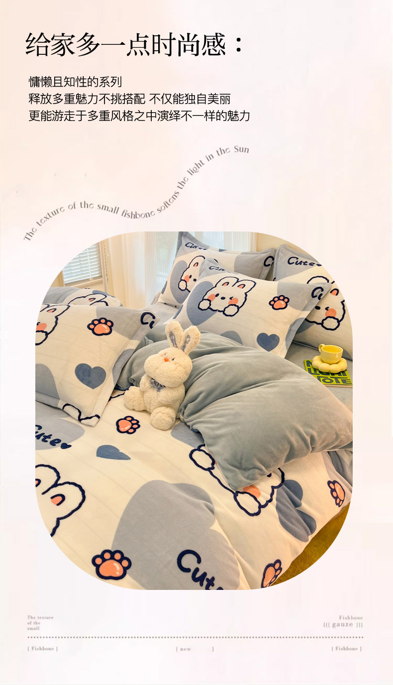 (总)倾慕 2025新款6D立体雪花绒系列四件套,北欧小熊,波波兔,波点头像,格格狗,欢乐小虎,活泼小兔,咖啡熊兔,礼物小狗,萌宠小兔,奶茶小龙灰,奶茶小龙蓝,奶茶小熊,汽车小熊,森林公园,时光小狗,时尚猫咪,小皮皮