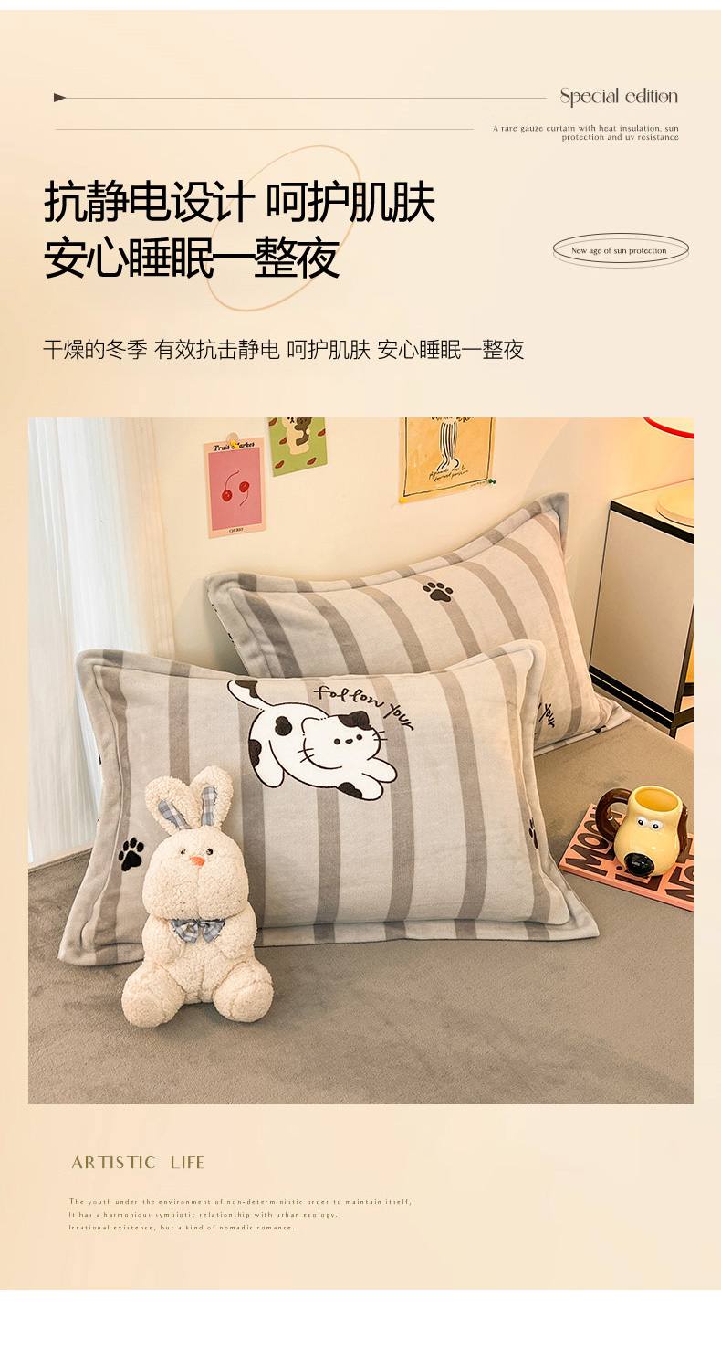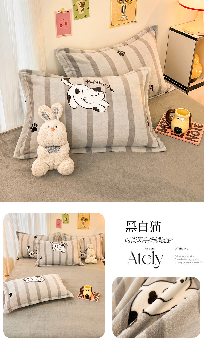 2024新款A类高克重时尚风牛奶绒加厚保暖系列--枕套 兔兔乐园