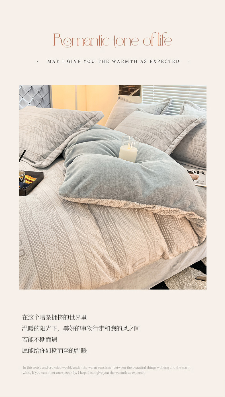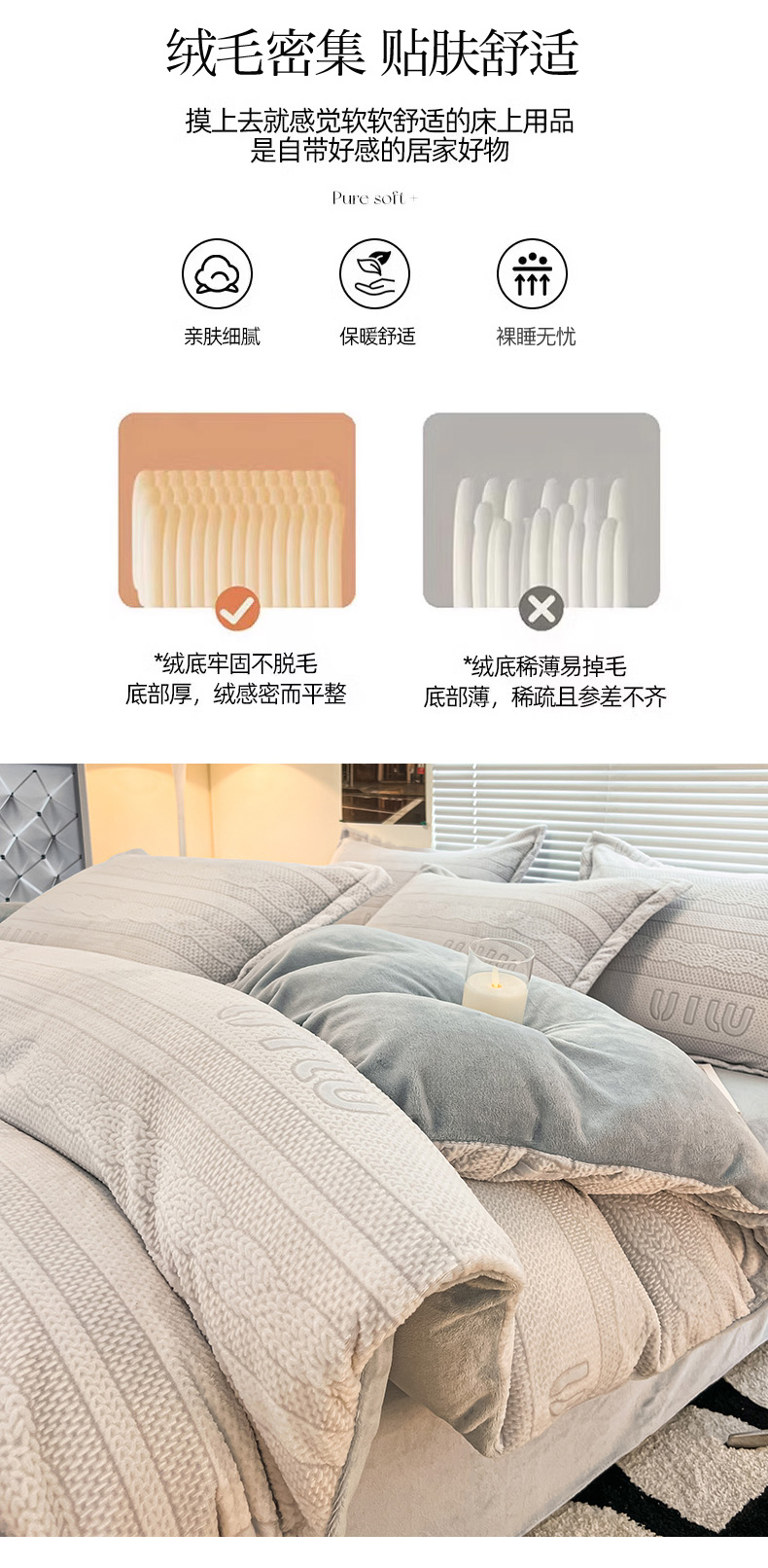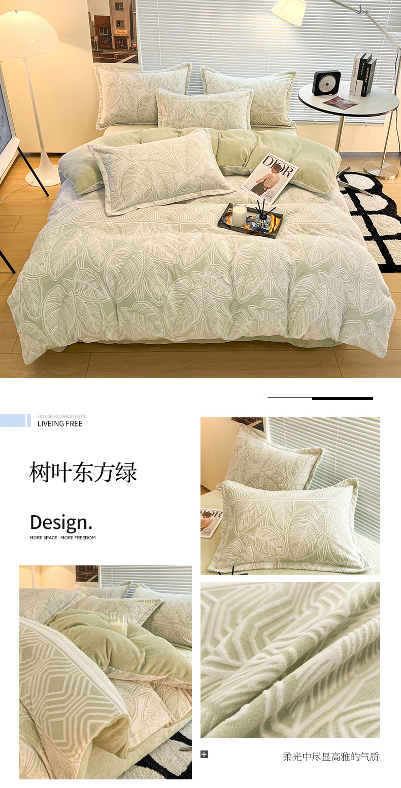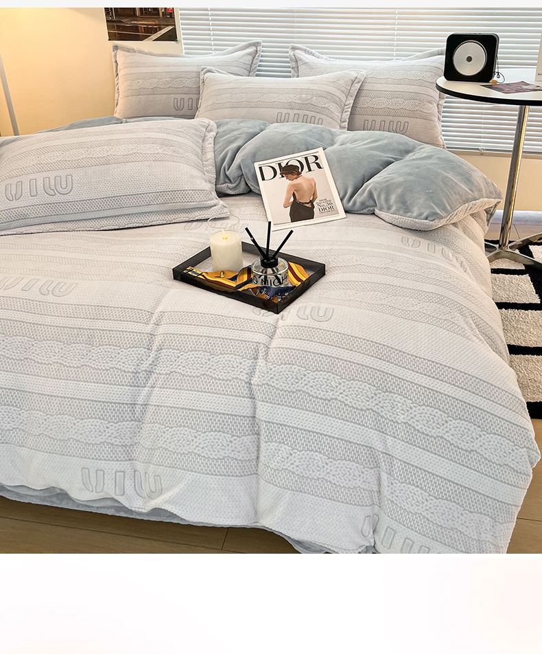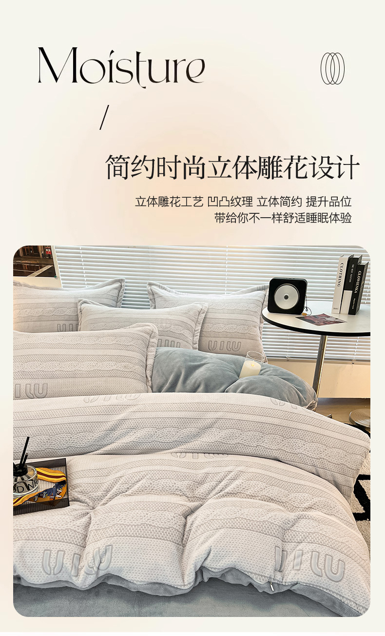 当前位置: 91家纺网 > 商品网购 > 床品套件 > 四件套 > 牛奶绒四件套 > 2024新款A类高克重立体浮雕牛奶绒加厚保暖简约风系列四件套 MIUMIU蓝