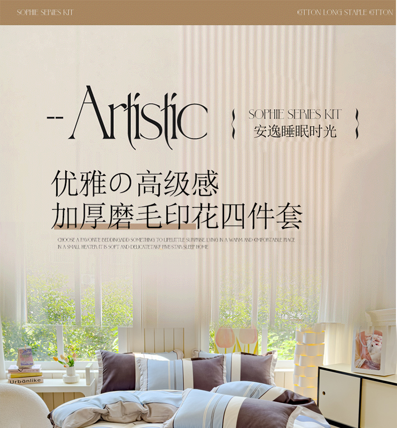 当前位置: 91家纺网 > 商品网购 > 床品套件 > 四件套 > 磨毛活性四件套 > 佑佳家纺 2024新款140克磨毛印花植物羊绒单被套磨毛四件套 格兰