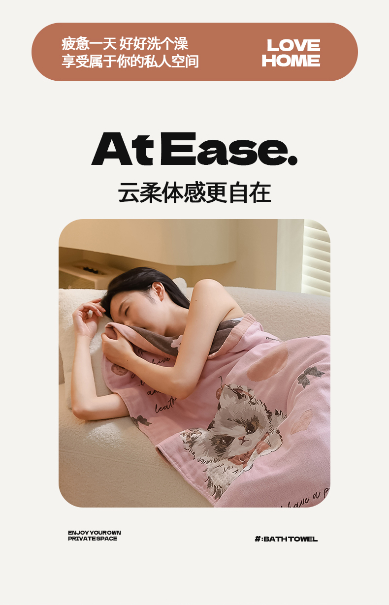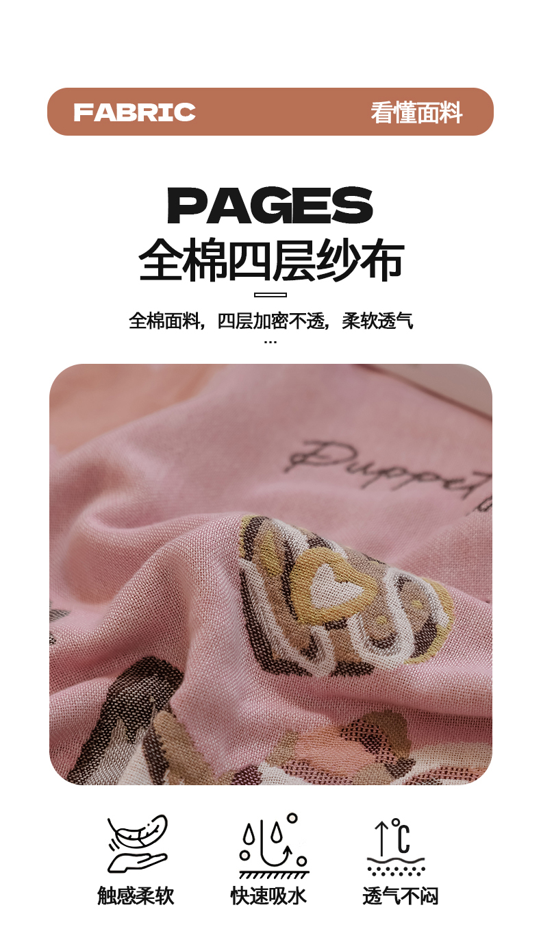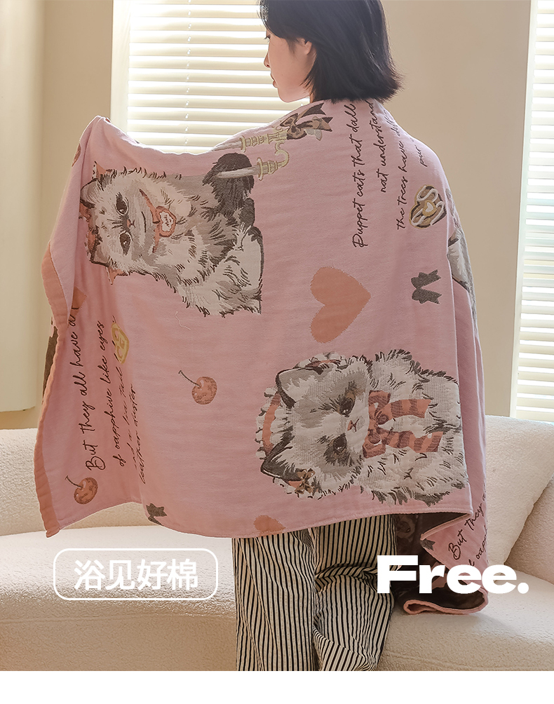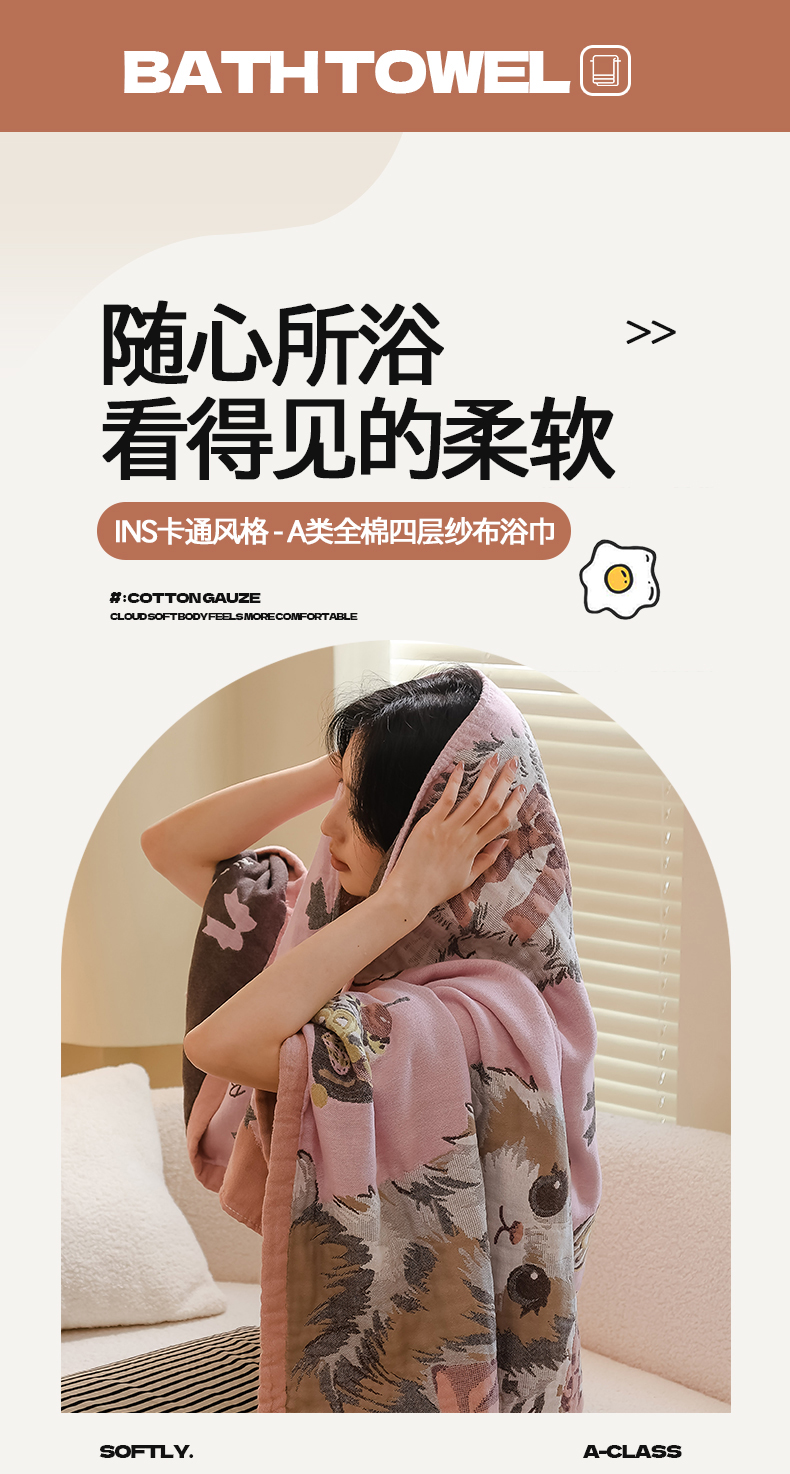 当前位置: 91家纺网 > 商品网购 > 居家日用 > 毛巾/浴巾/浴袍 > 浴巾 > 雯雨家纺 2024新款四层全棉纱布浴巾加大毛巾80*160cm 公主猫
