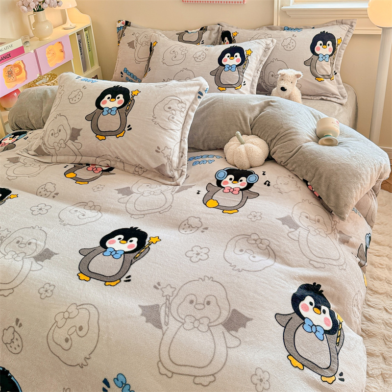 当前位置: 91家纺网 > 商品网购 > 床品套件 > 四件套 > 牛奶绒四件套 > 名兮家居 2024新款卡通时尚风高克重牛奶绒四件套 企鹅宝宝