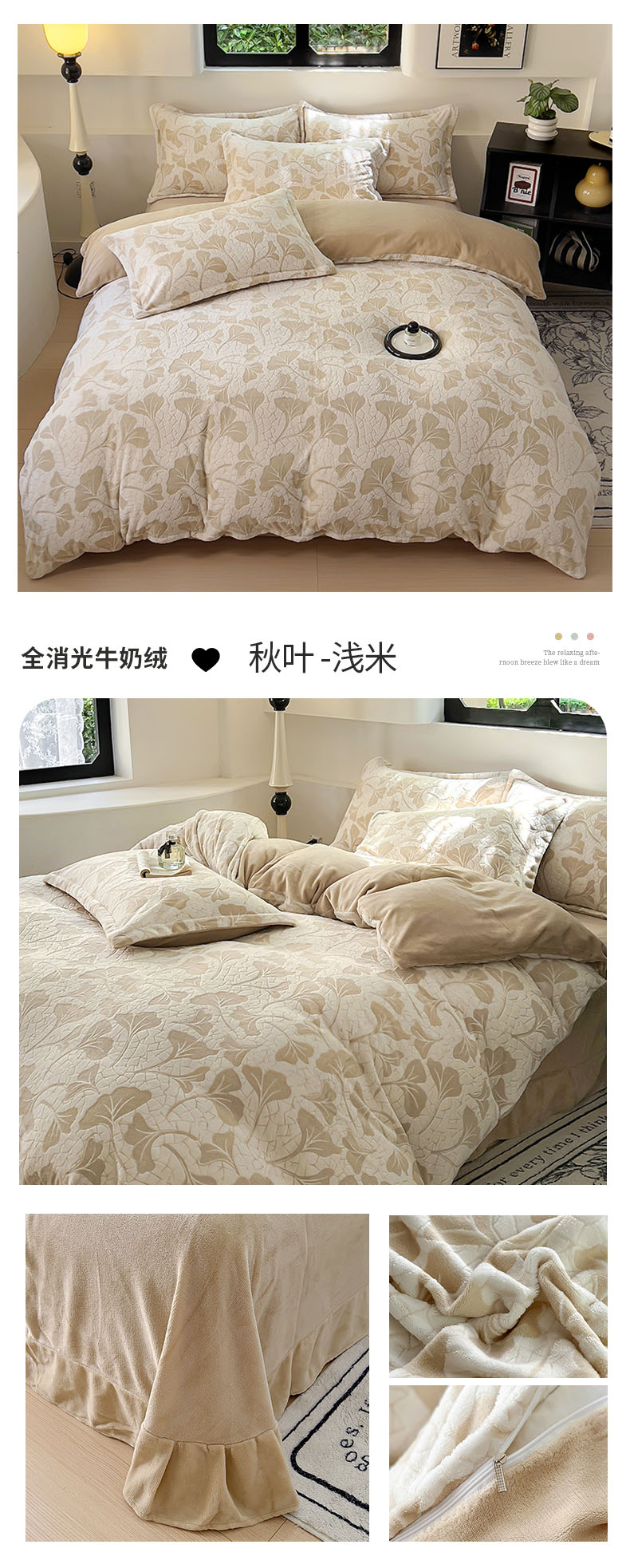 新印象 2025新款高克重牛奶绒烂花四件套雕花绒四件套秋叶