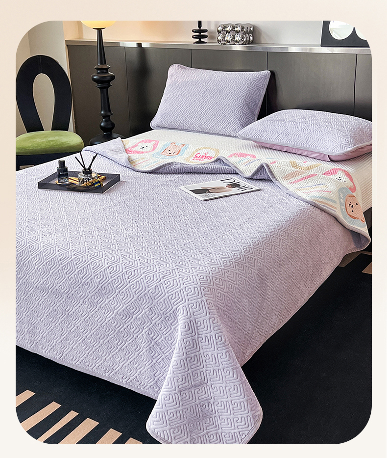 茉夕家纺 2024新款奶芙纯棉牛奶绒水洗床盖 奶芙-紫色