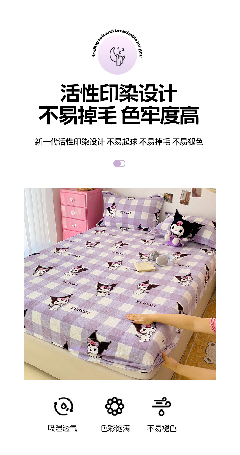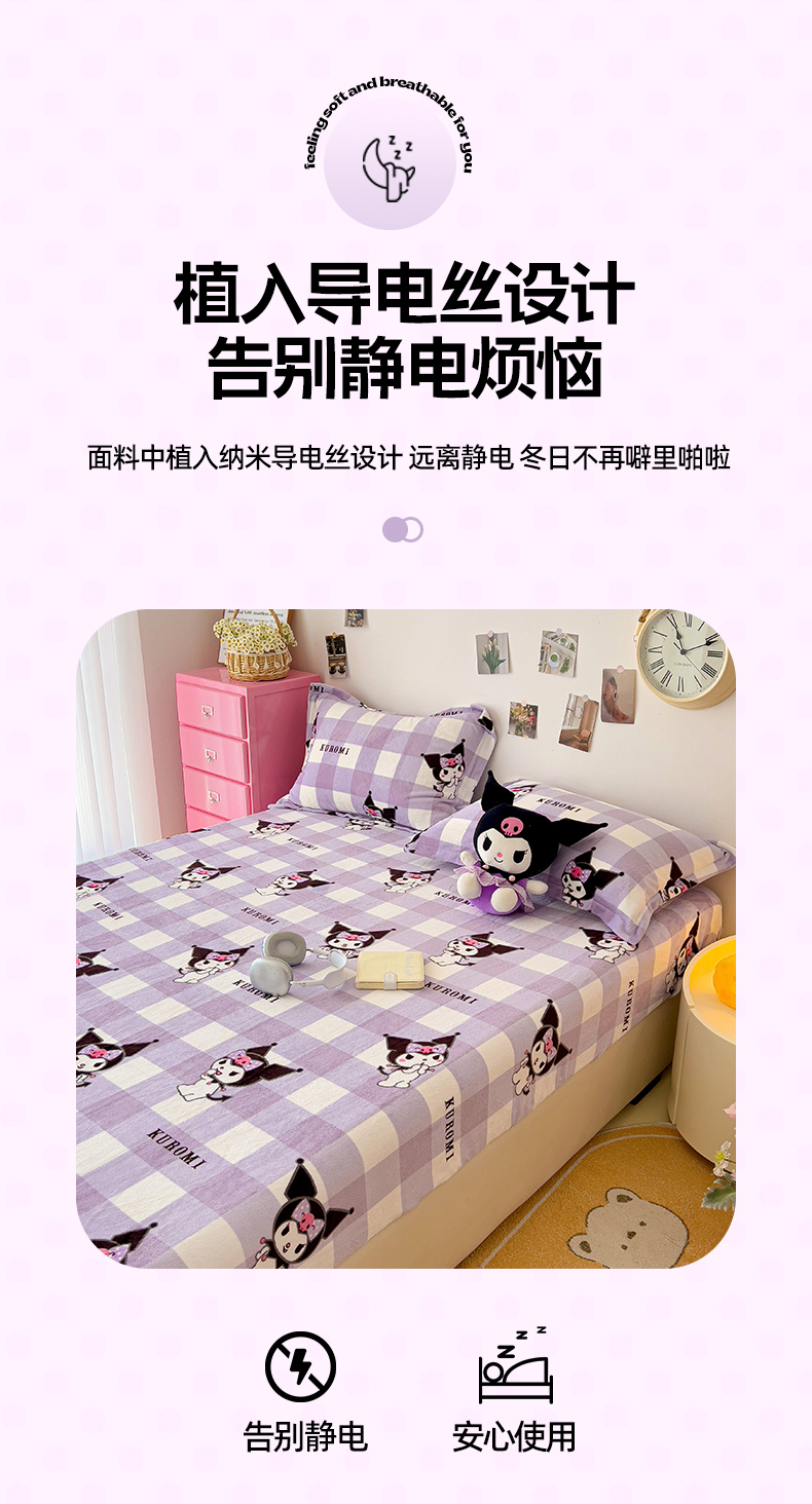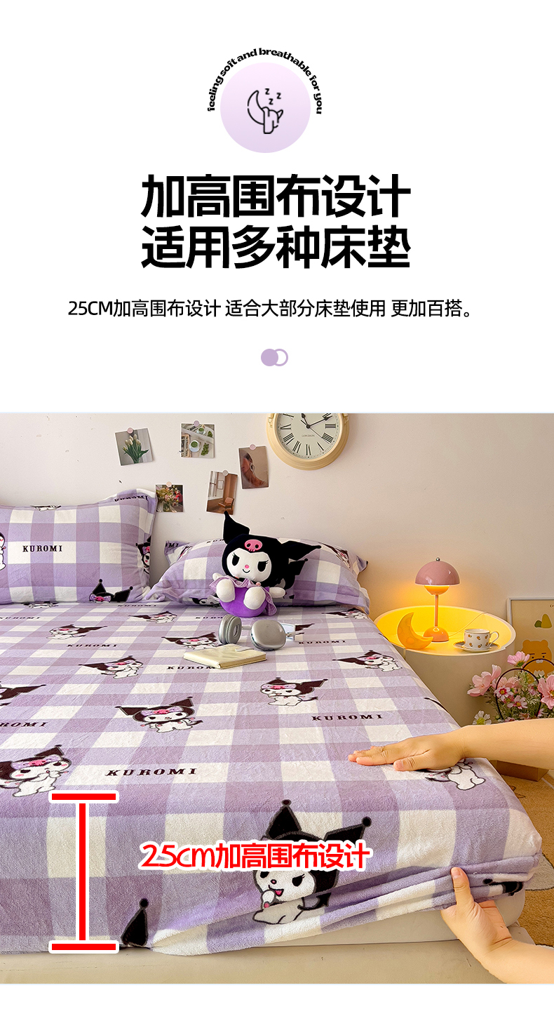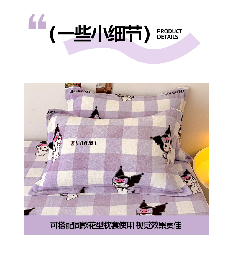 • 91家纺网 家纺一手货源 找家纺 KT猫直营店 2024新款三丽鸥正版授权库洛米牛奶绒单品床笠 格子库洛米-笠
