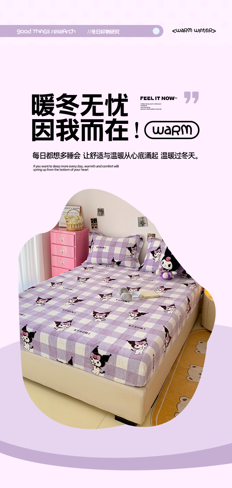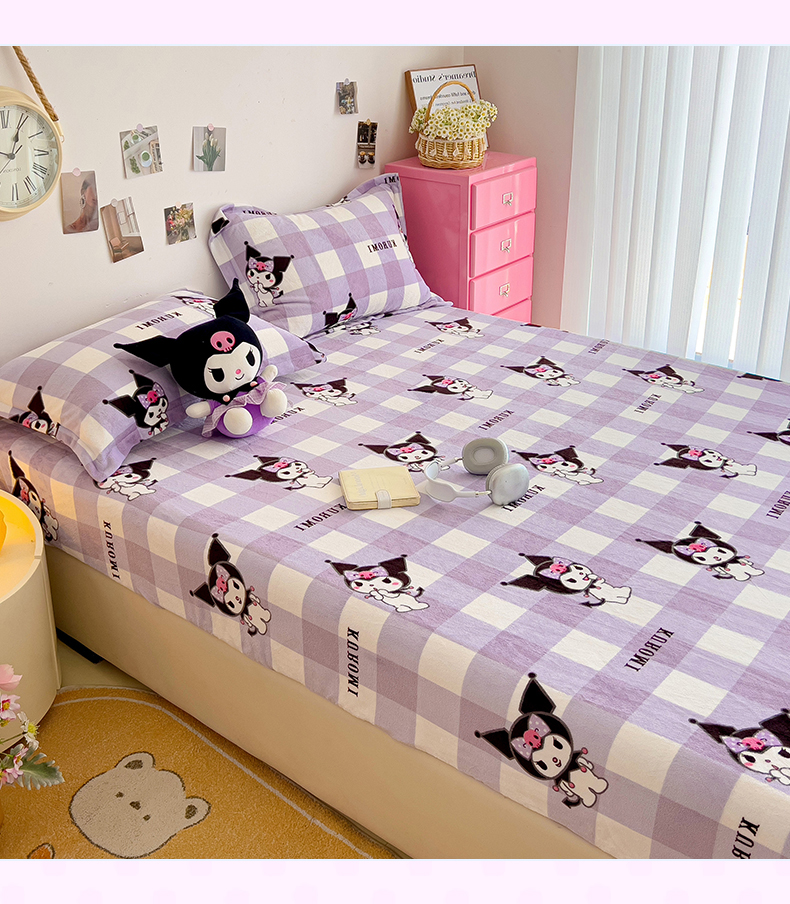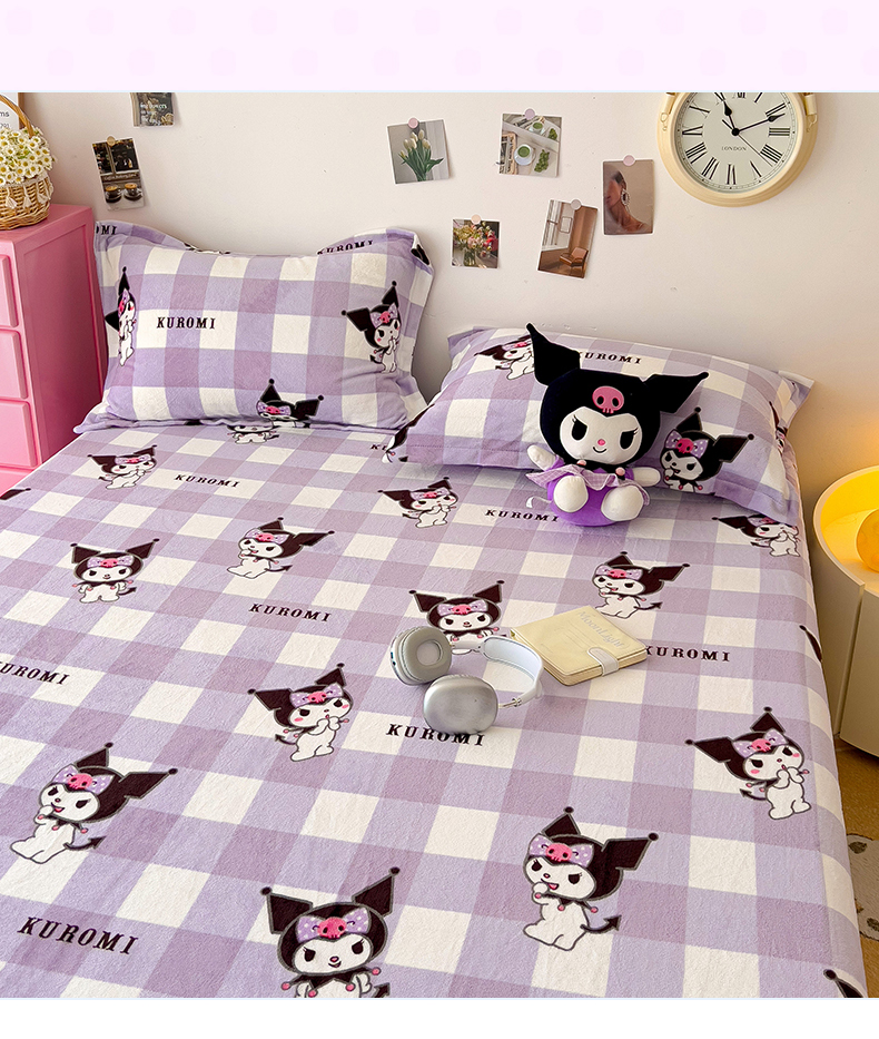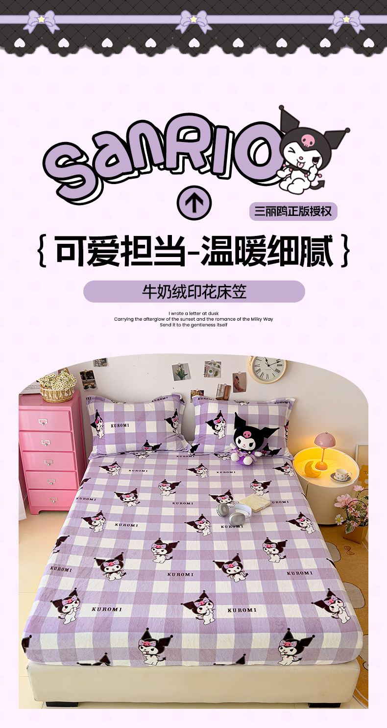KT猫直营店 2024新款三丽鸥正版授权库洛米牛奶绒单品床笠 格子库洛米-笠