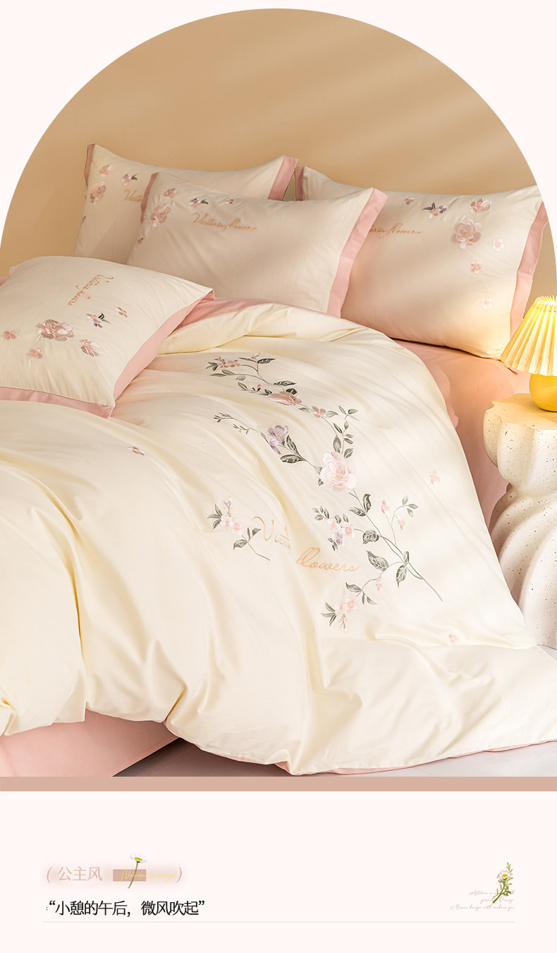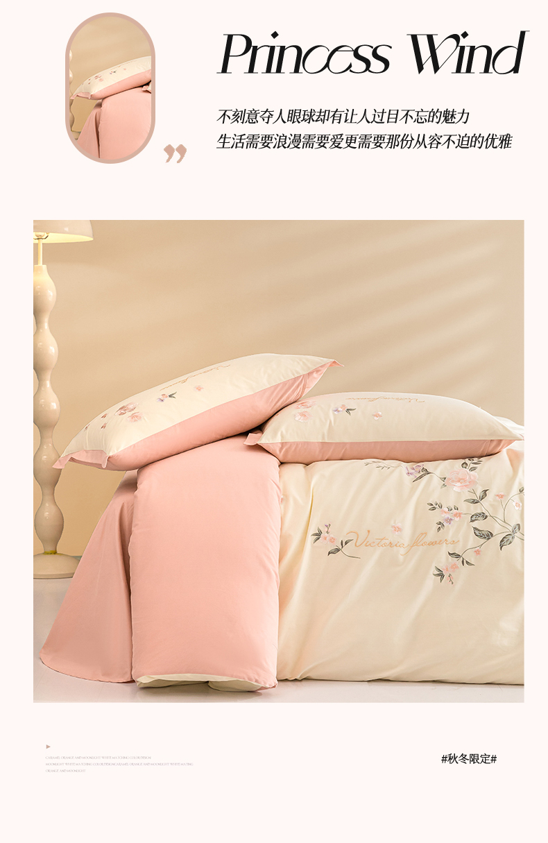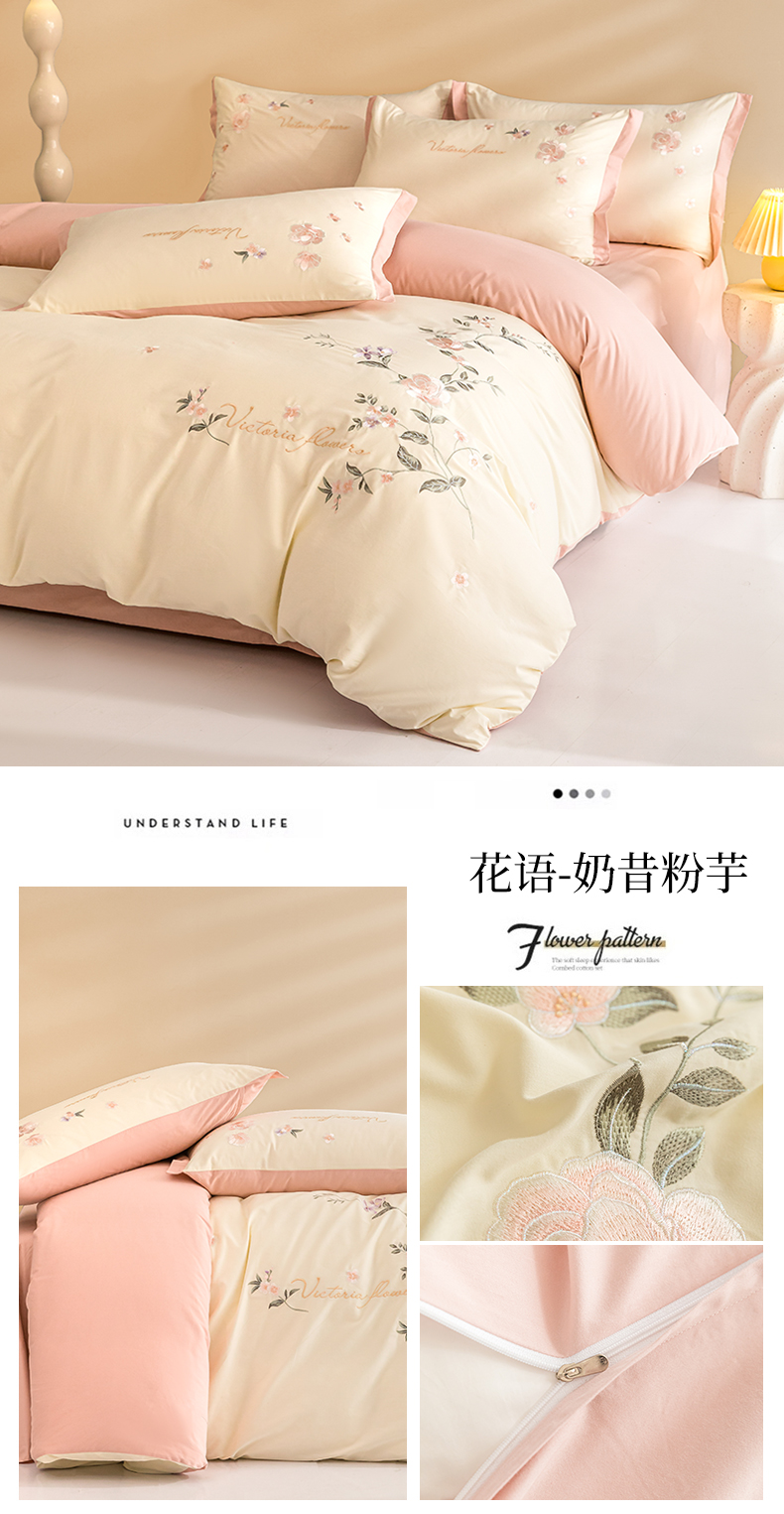 2024新保暖-秋冬A类100支全棉磨毛刺绣四件套-花语系列 花语-奶昔粉芋