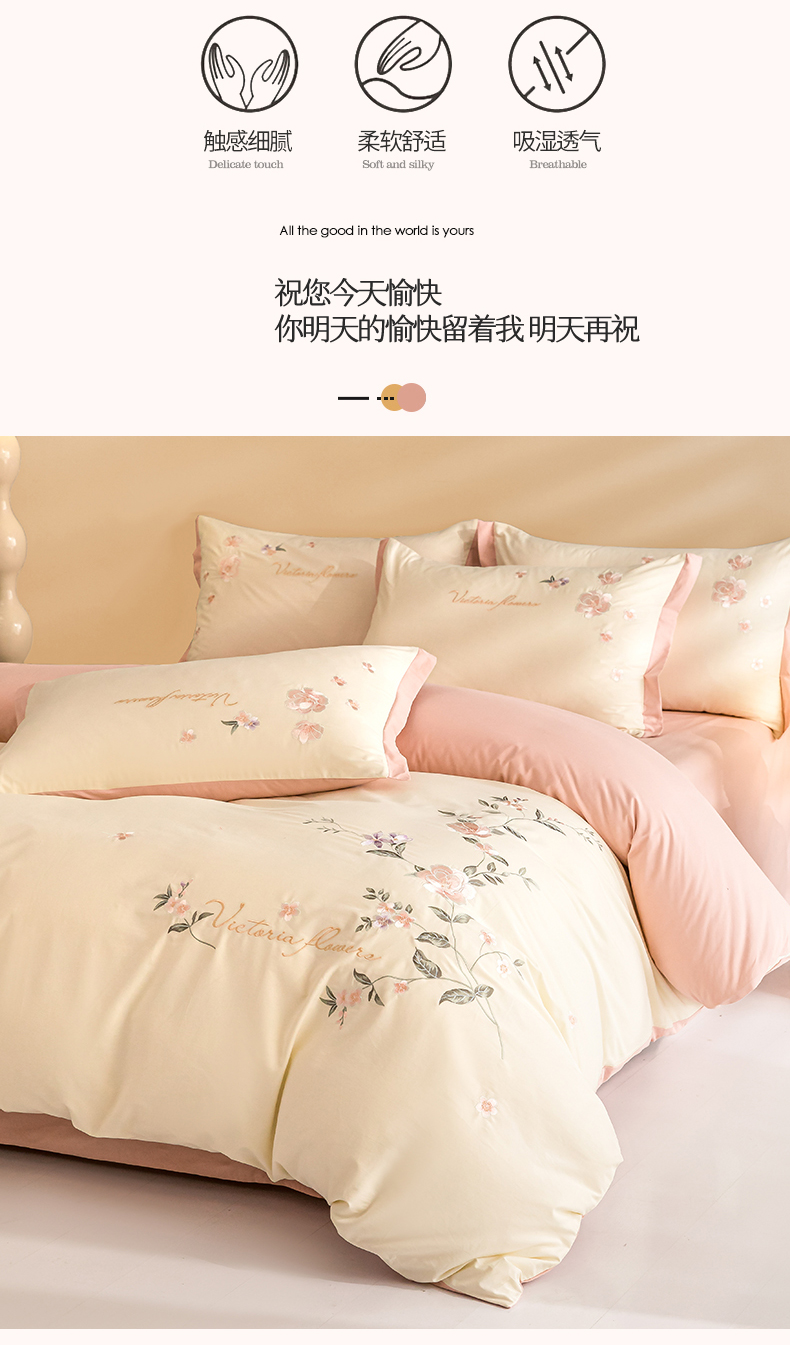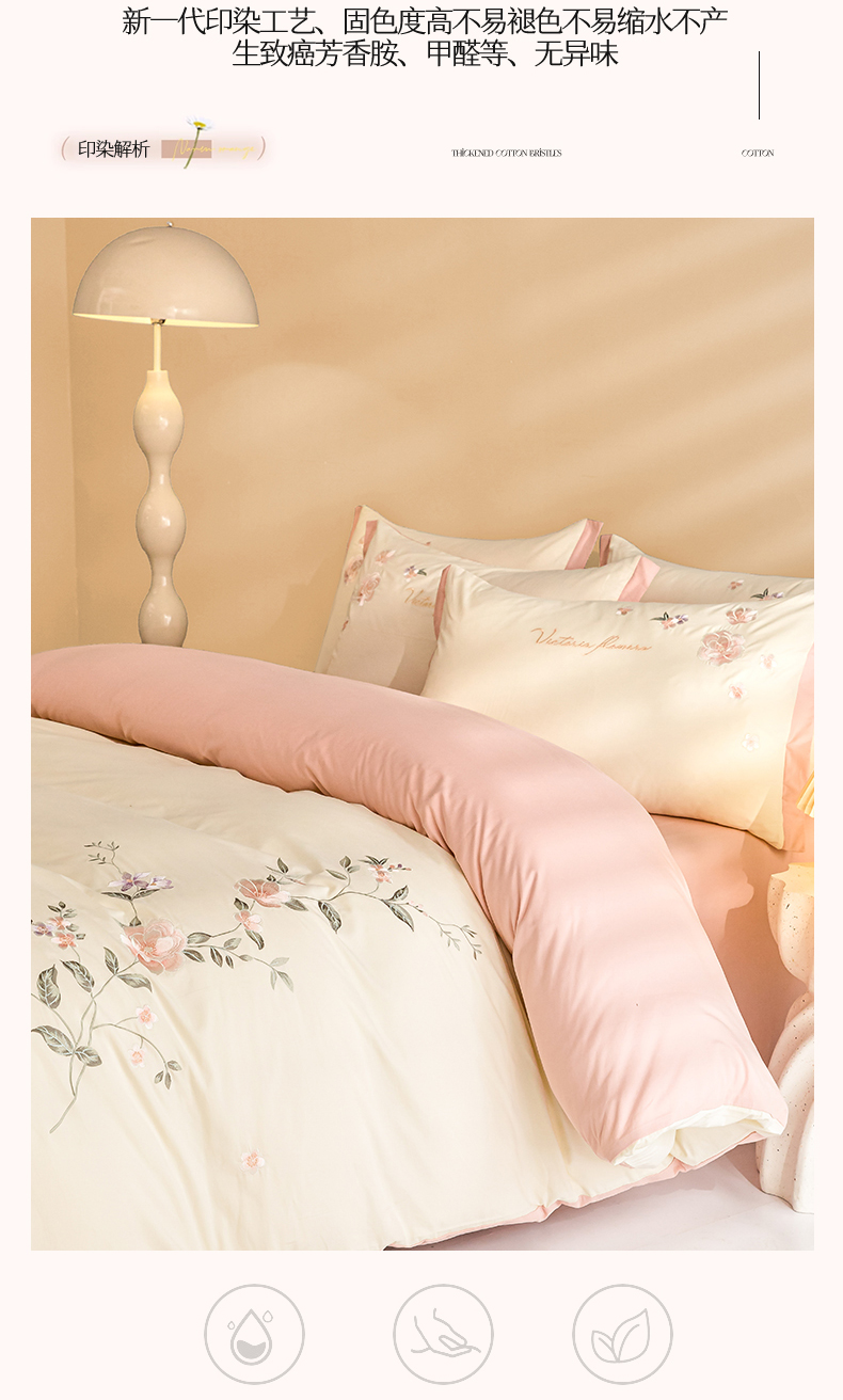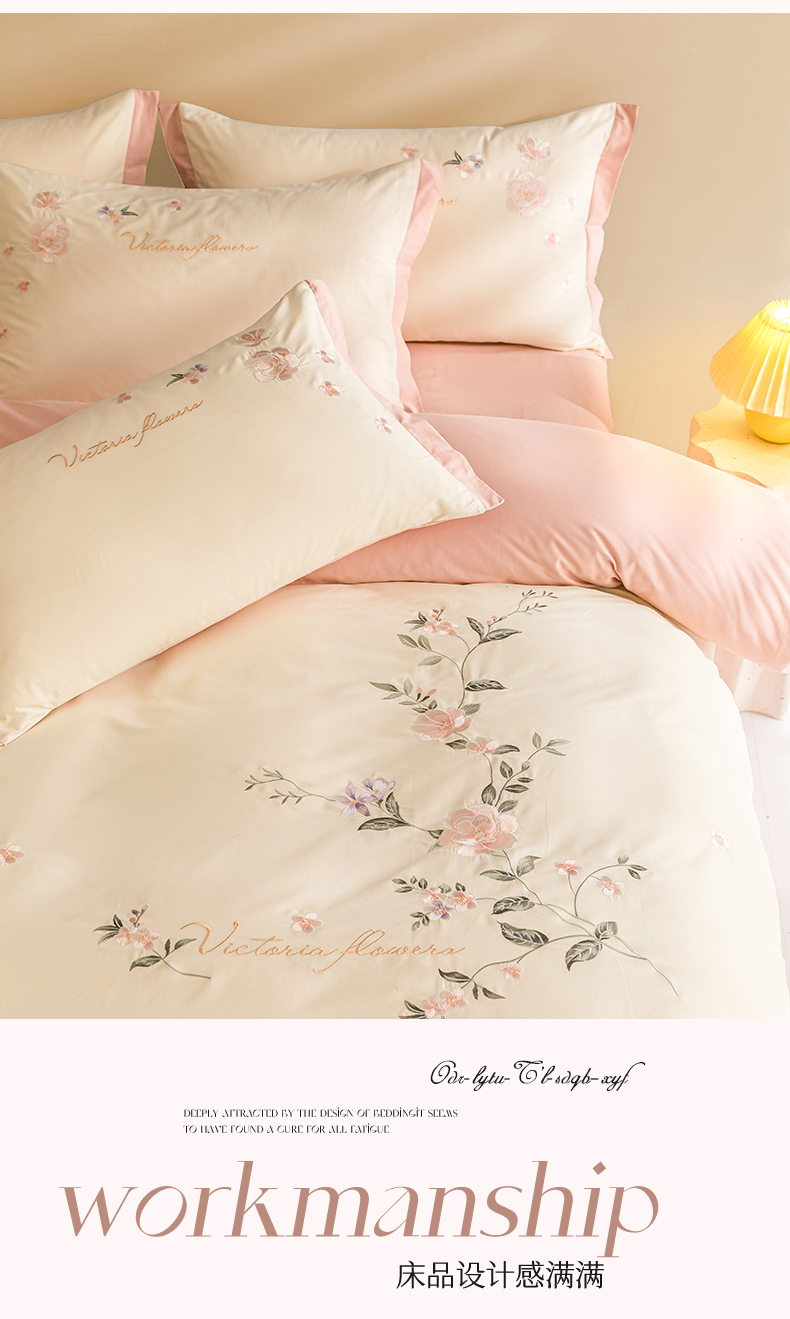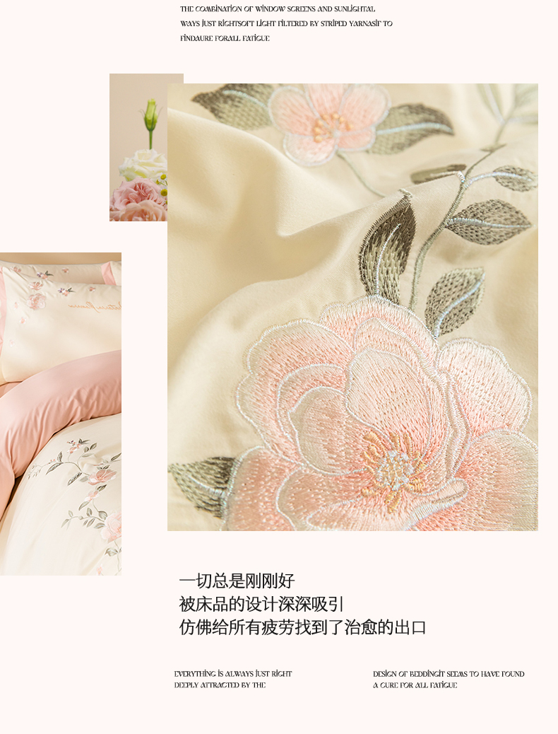 2024新保暖-秋冬A类100支全棉磨毛刺绣四件套-花语系列 花语-奶昔粉芋