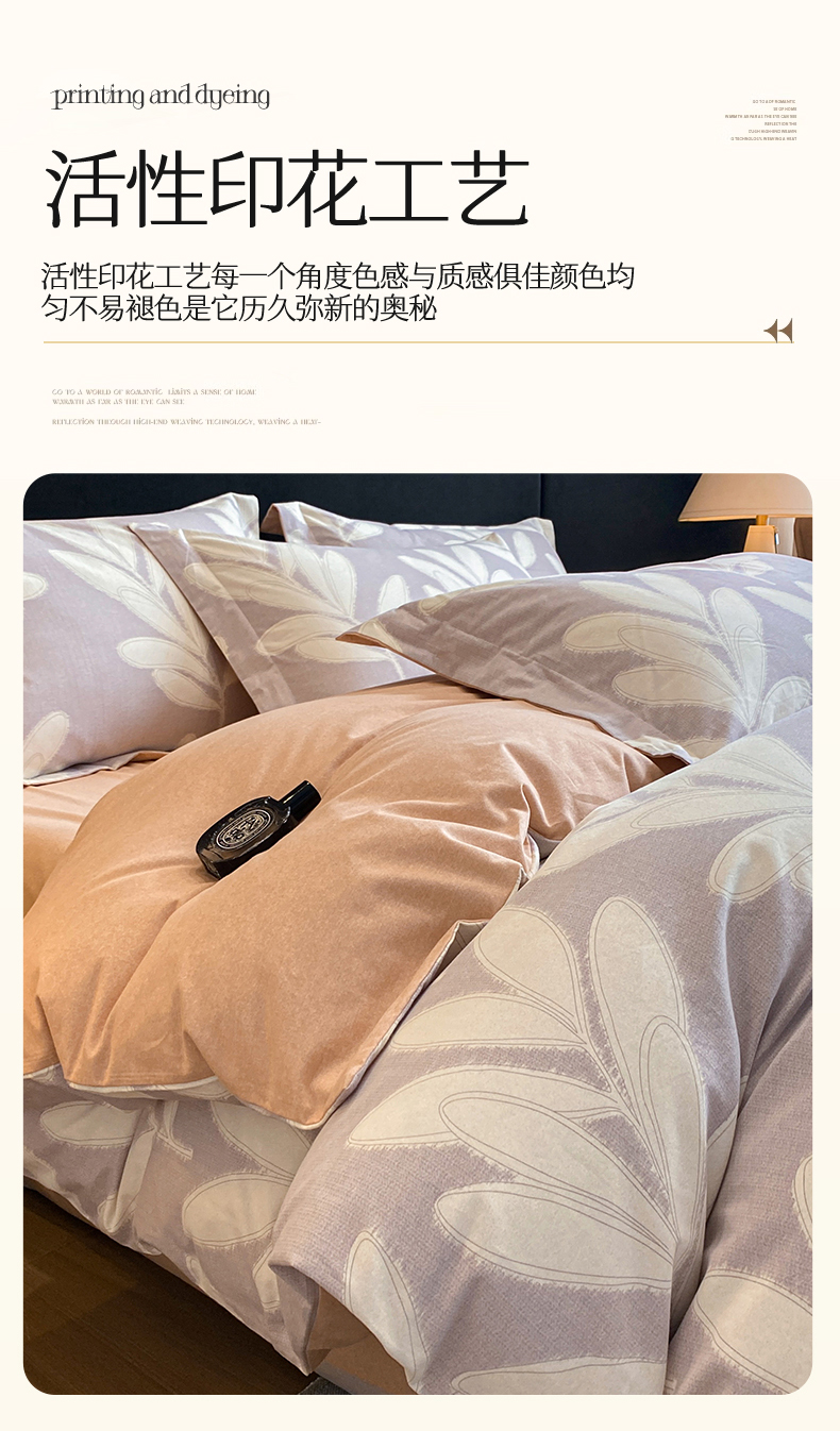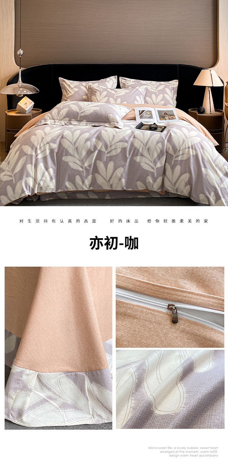商品名称:2024新保暖-秋冬加厚全棉磨毛活性印花系列四件套(礼盒包装) 亦初-咖