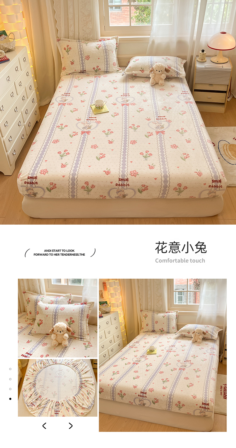 川悦生活 2024新款加厚牛奶绒印花单床笠 床笠花意小兔