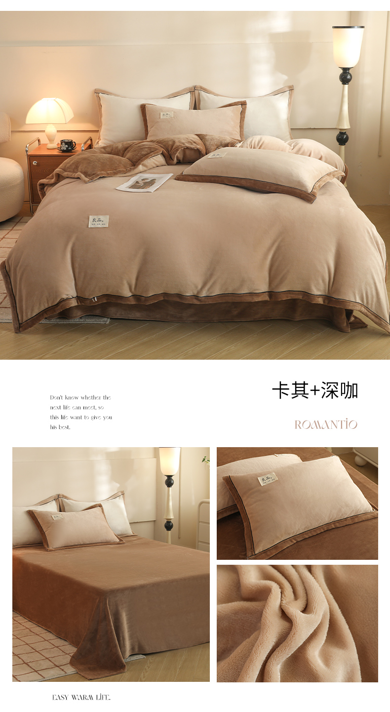 • 91家纺网 家纺一手货源 找家纺 2025新款A类加厚牛奶绒大包边系列-单被套 卡其+深咖