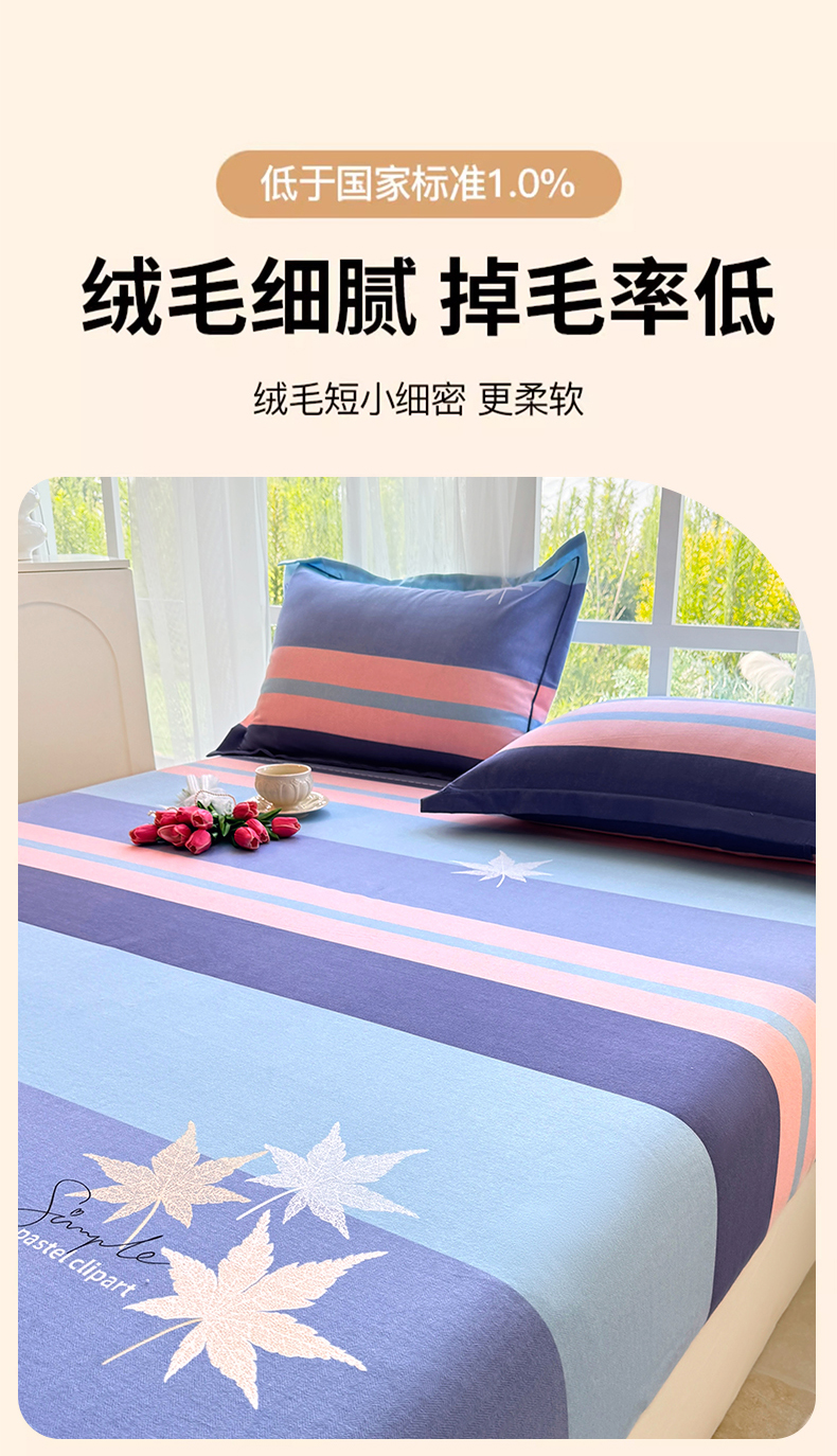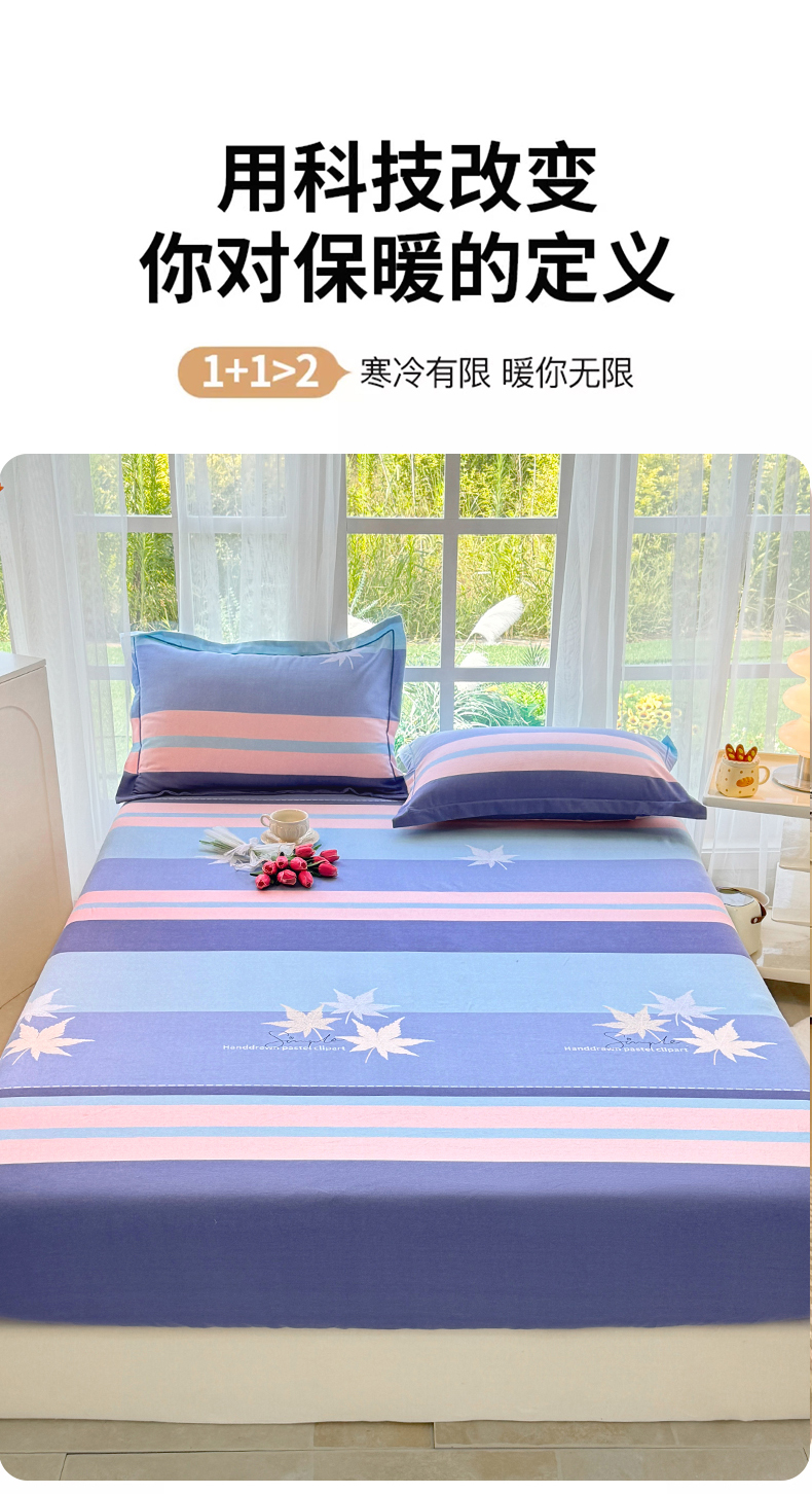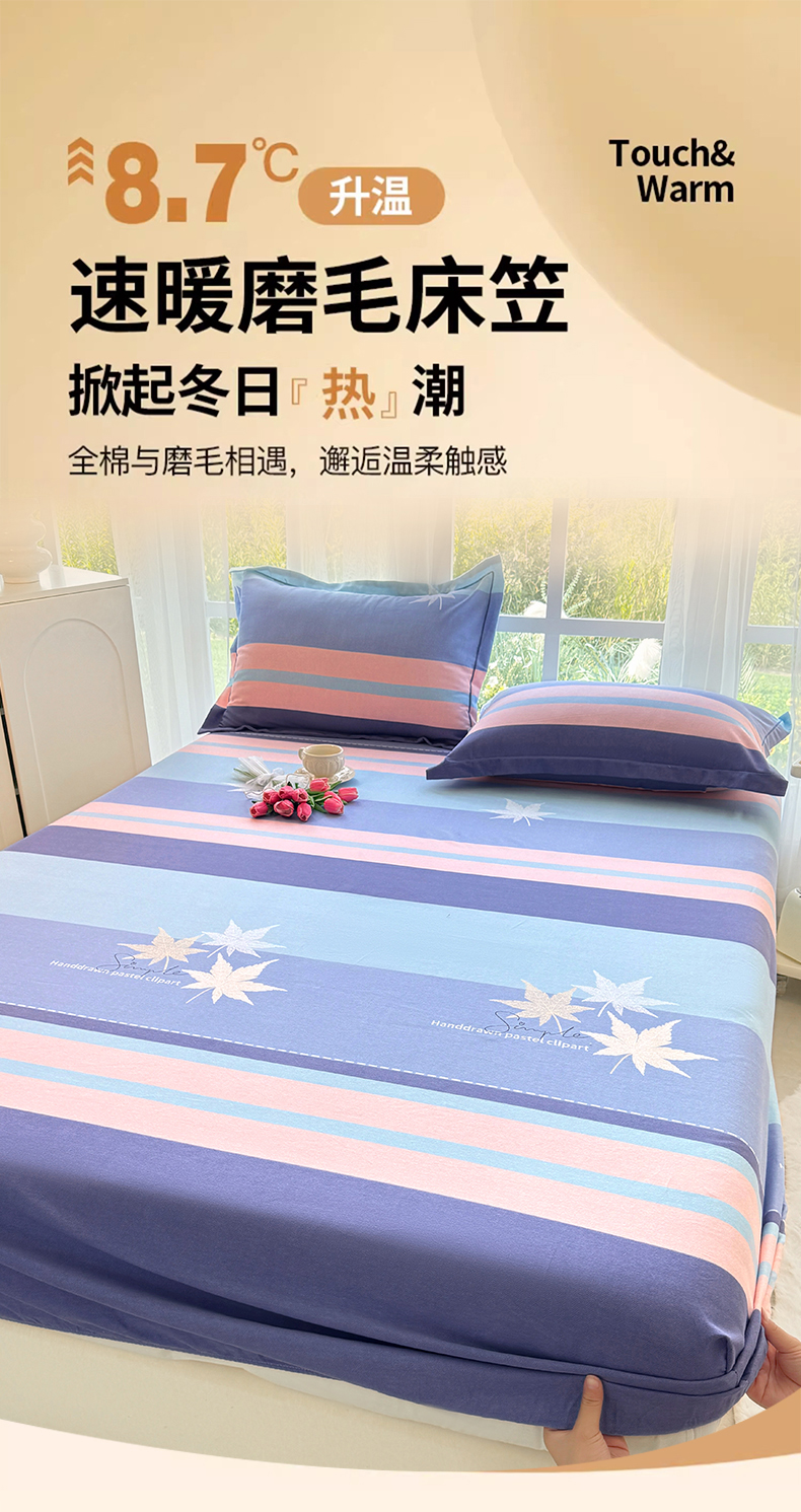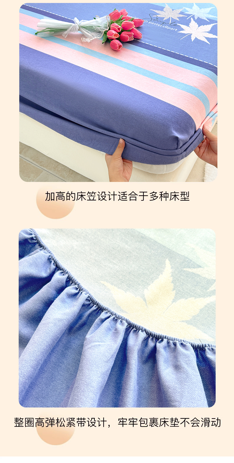 家贝爱 2024新款加厚生态全棉磨毛床笠 枫林晚蓝