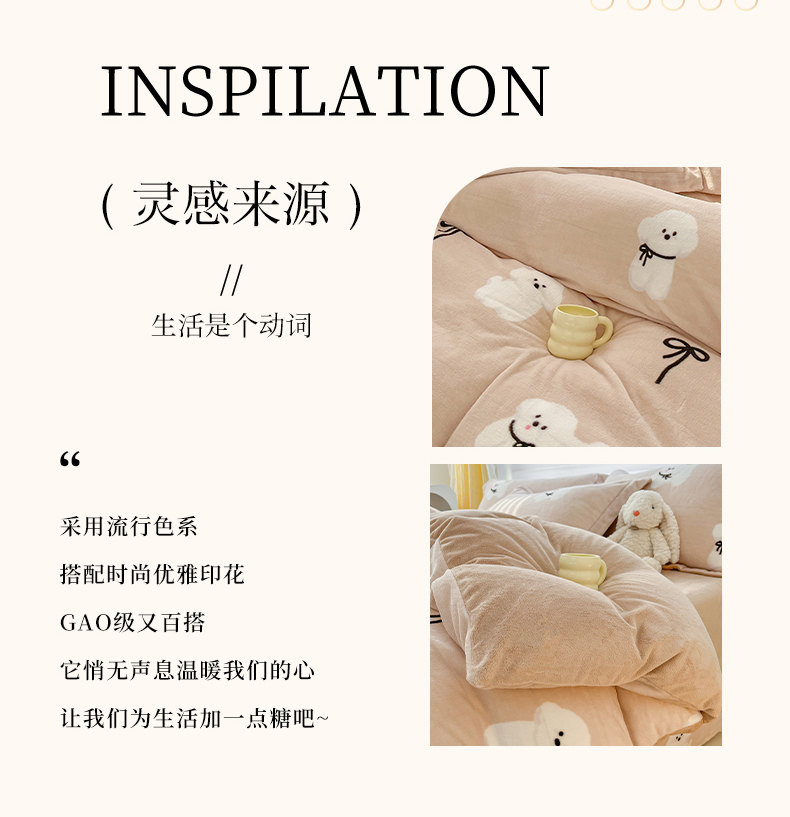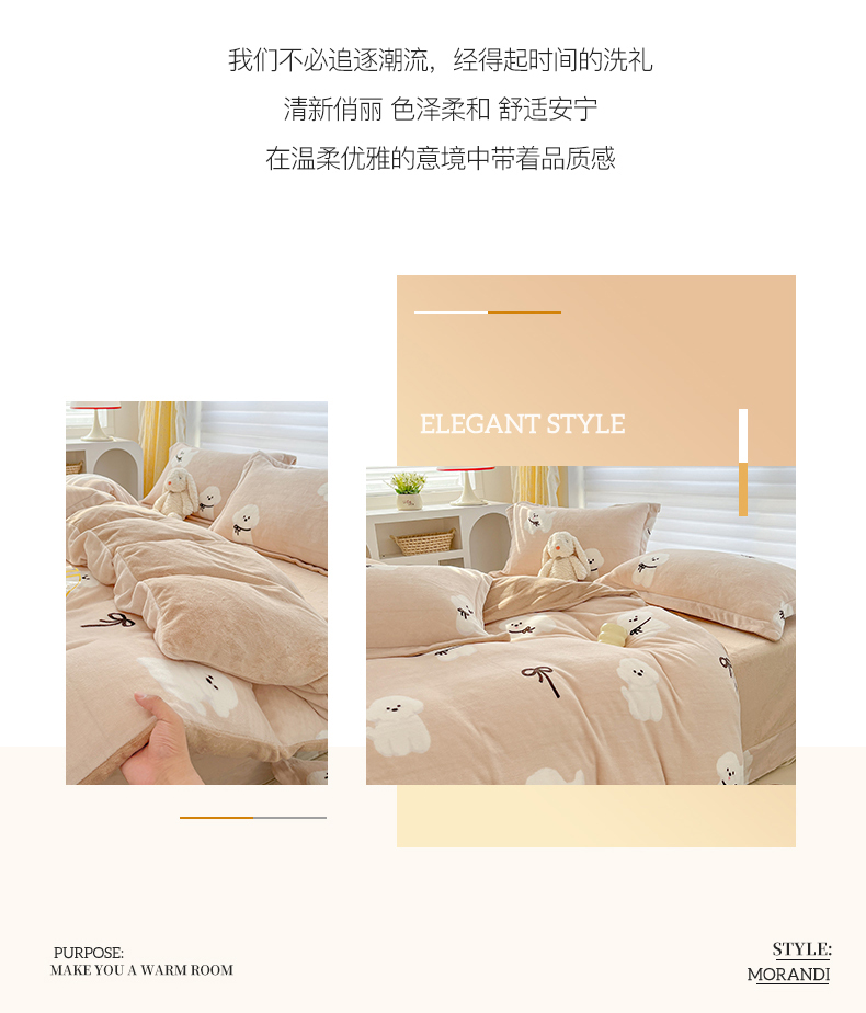 商品名称:简如 2025新款加厚220克牛奶绒印花四件套 调皮的小乖比-咖