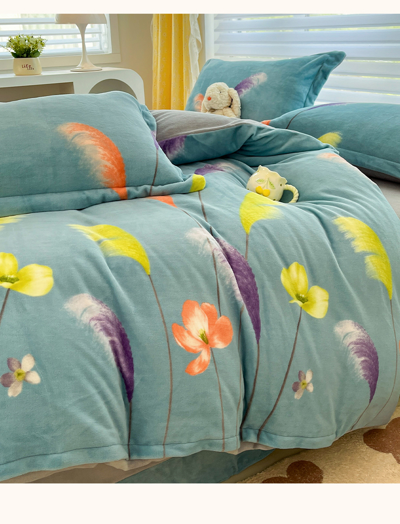 商品名称:简如 2025新款加厚220克牛奶绒印花四件套 芦花