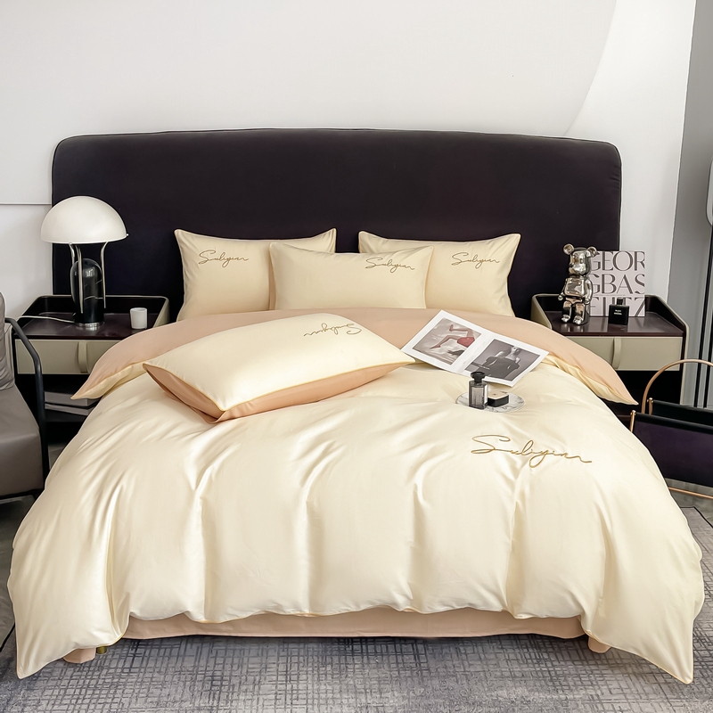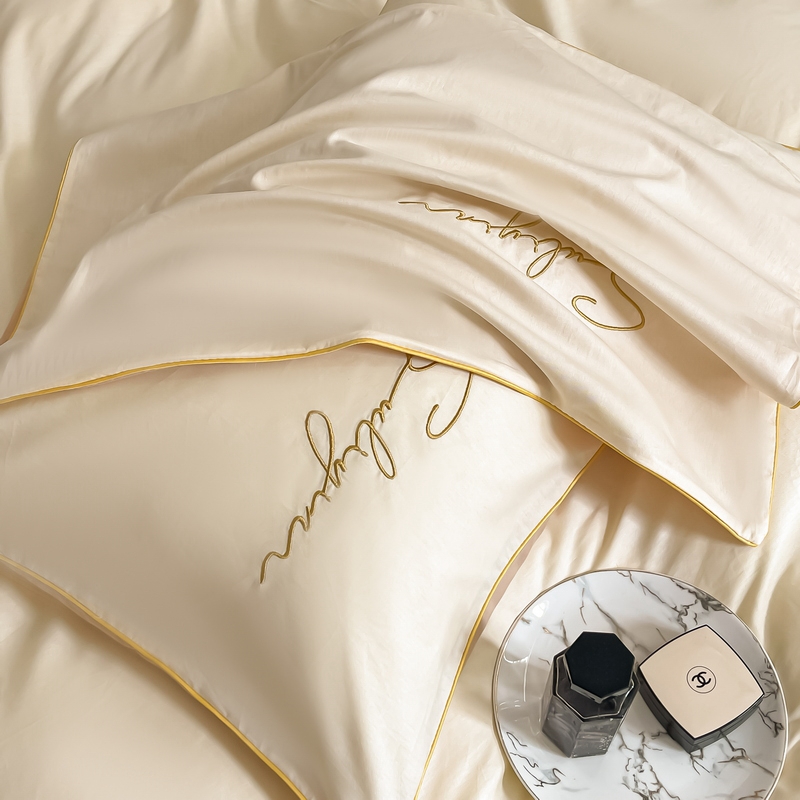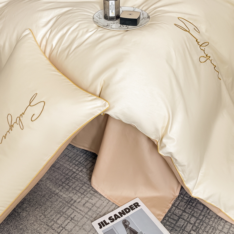 商品名称:法莱妮毛毯 2025新款轻奢13372喷气纯色百分百纯棉全棉刺绣麻绳四件套 奶昔白+奶茶