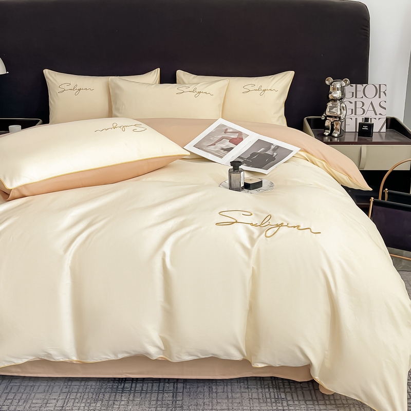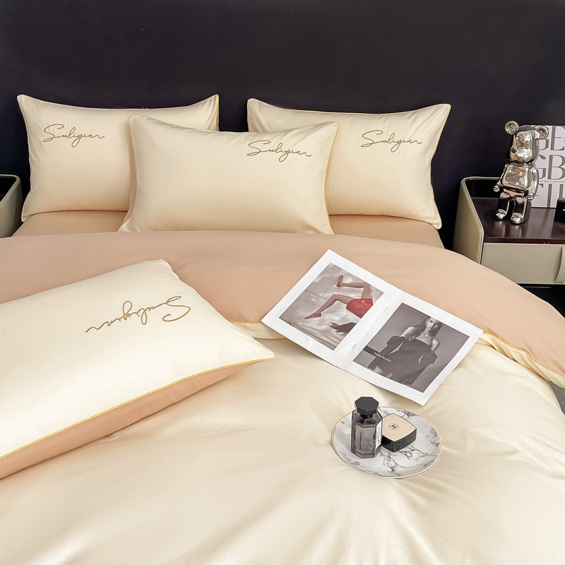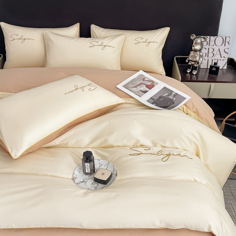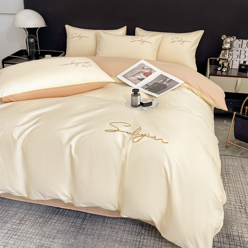 法莱妮毛毯 2025新款轻奢13372喷气纯色百分百纯棉全棉刺绣麻绳四件套 奶昔白+奶茶