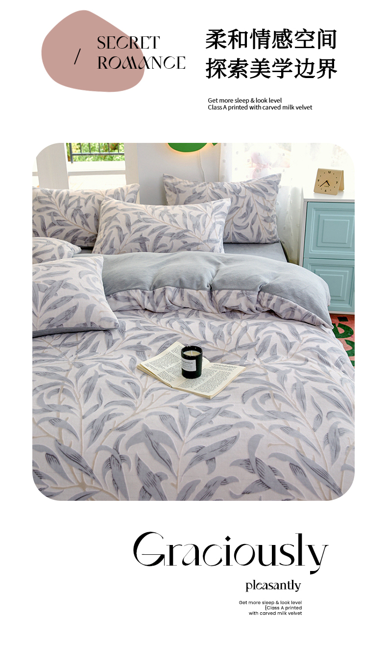 当前位置: 91家纺网 > 商品网购 > 床品套件 > 四件套 > 牛奶绒四件套 > 菡宝 2024新款雕花绒230g全消光牛奶绒四件套及单品 - 四件套 倾羽