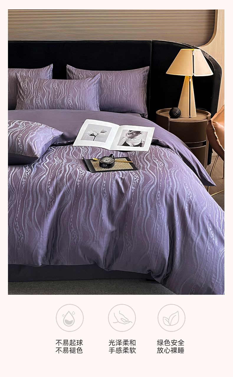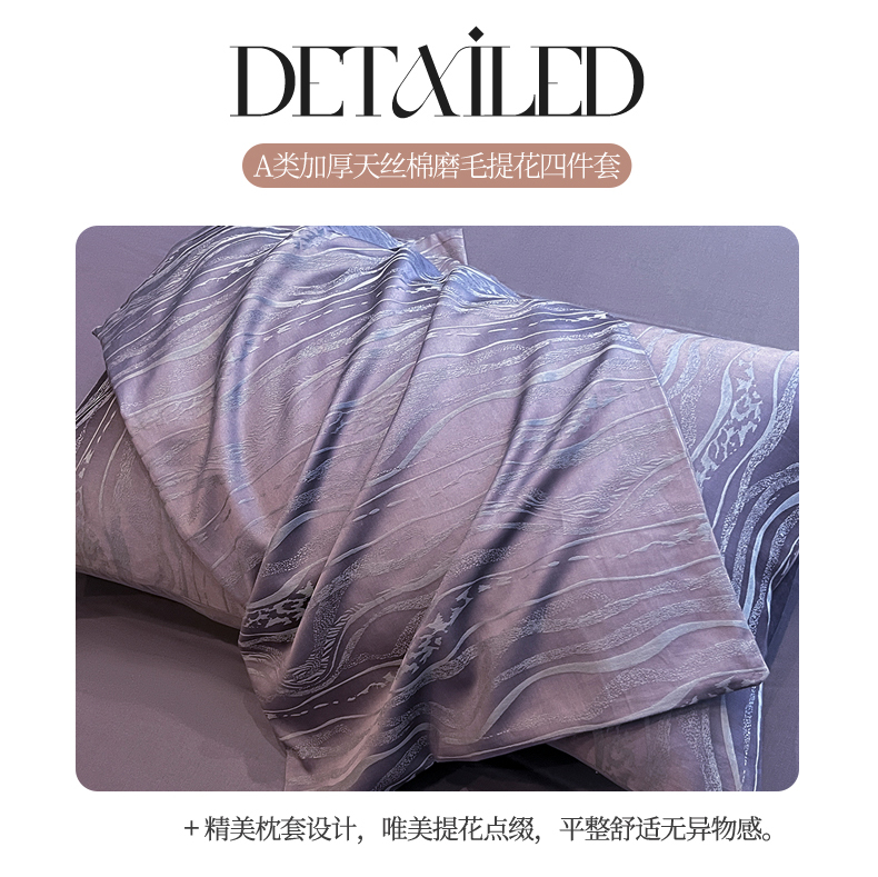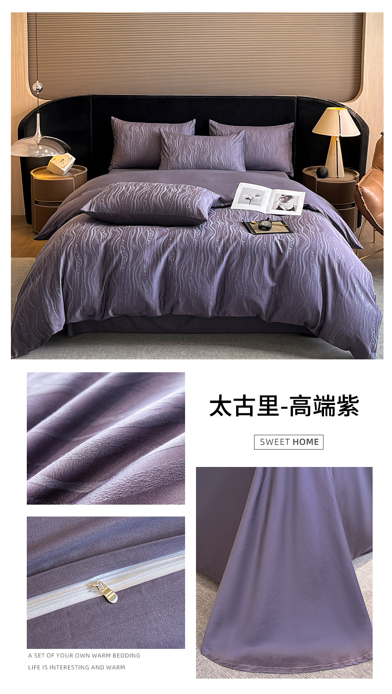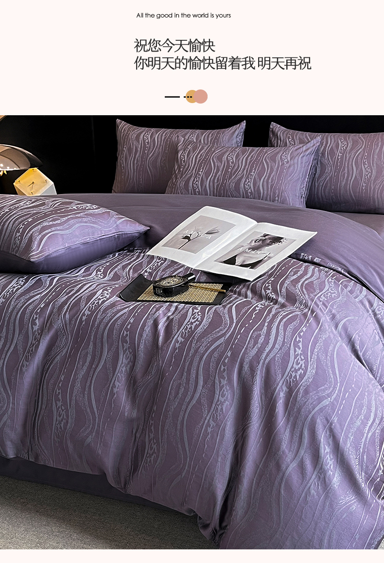 商品名称:蓝米卡夫 2024新保暖-秋冬A类兰精天丝棉磨毛大提花四件套(礼盒包装) 太古里-高端紫