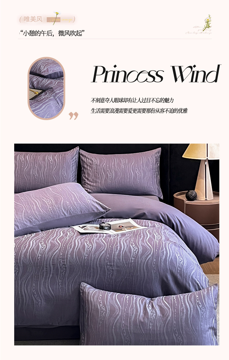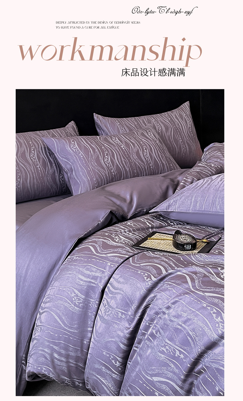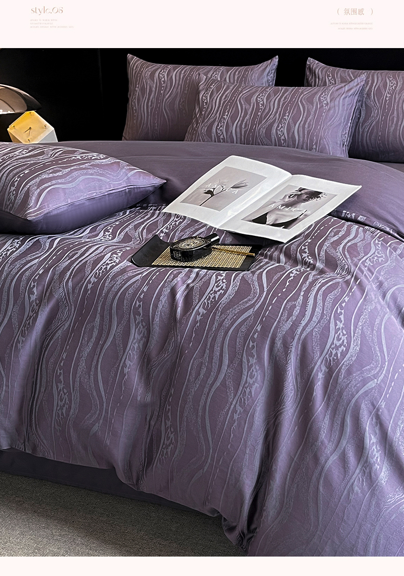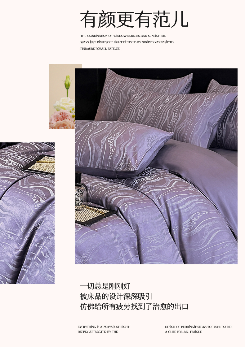 商品名称:蓝米卡夫 2024新保暖-秋冬A类兰精天丝棉磨毛大提花四件套(礼盒包装) 太古里-高端紫