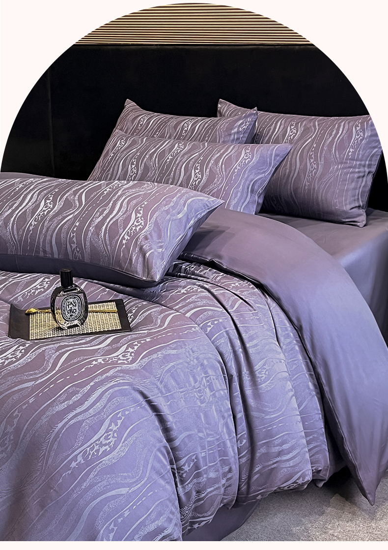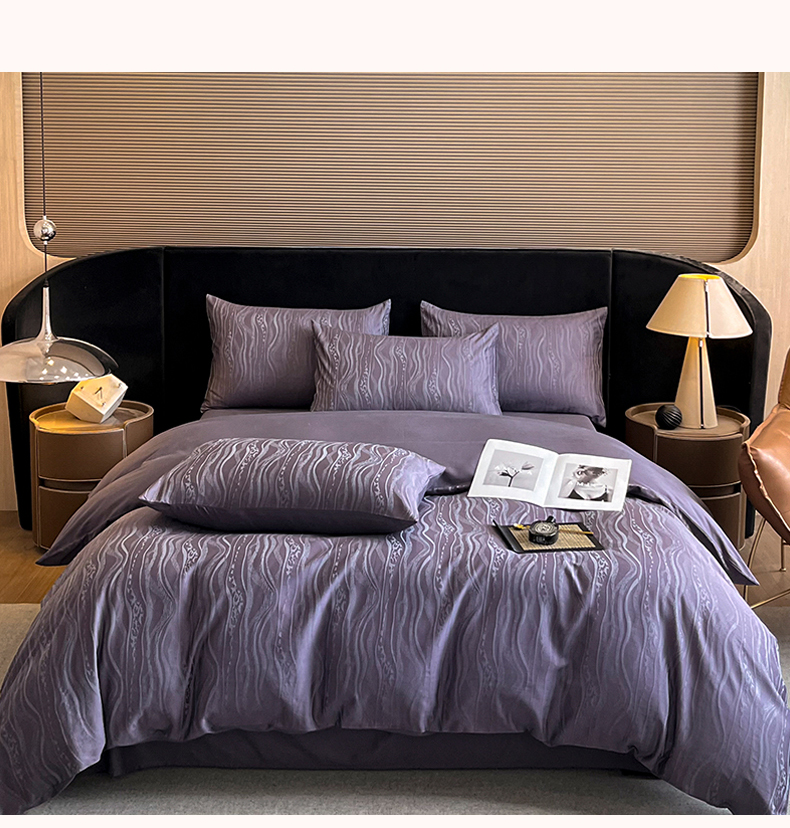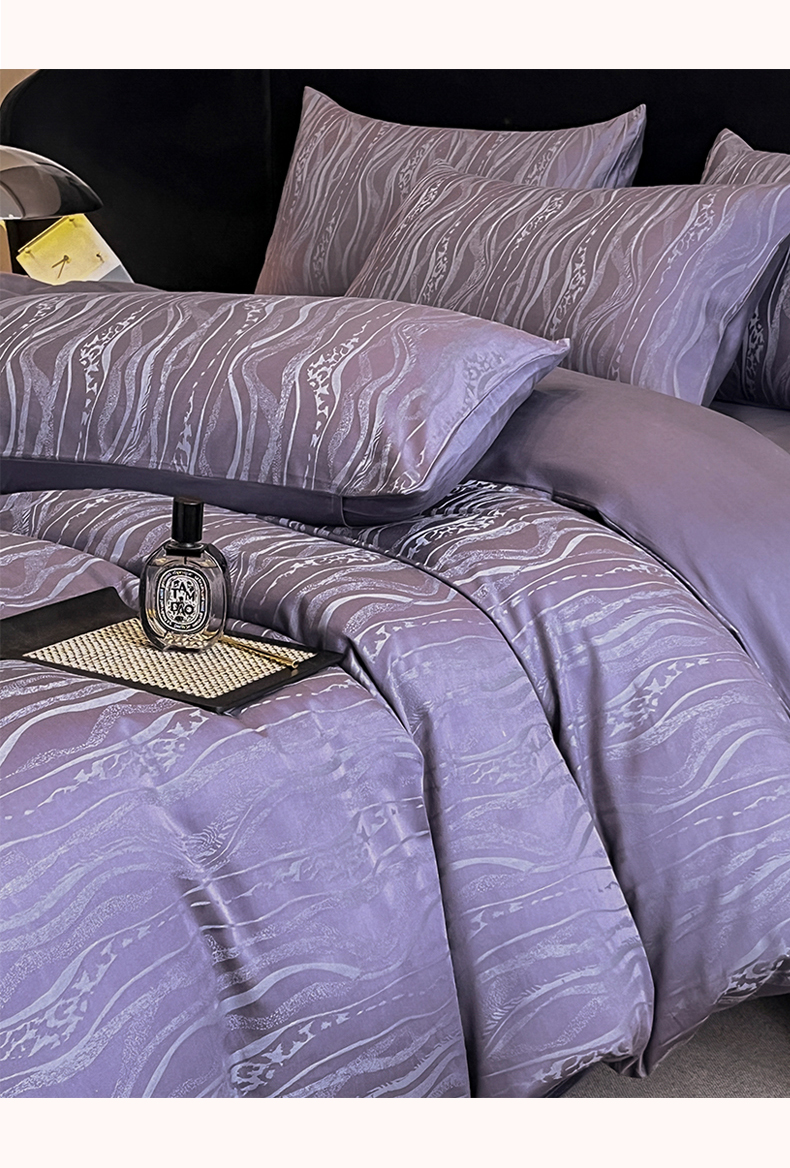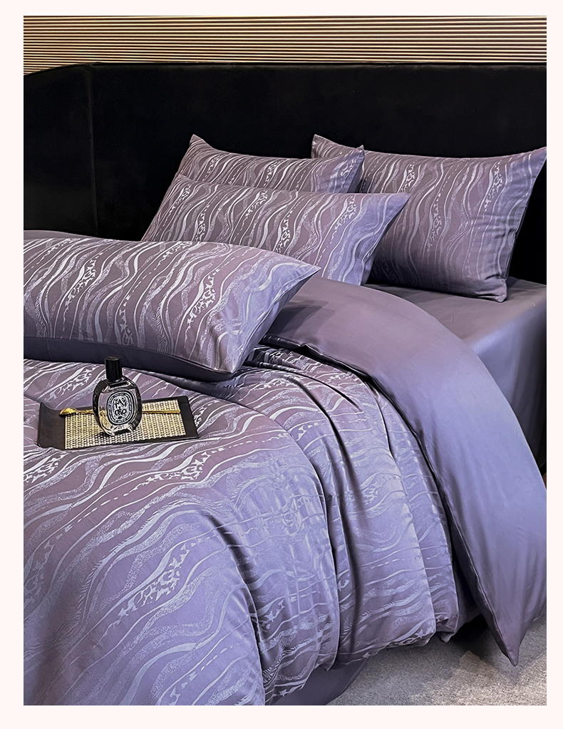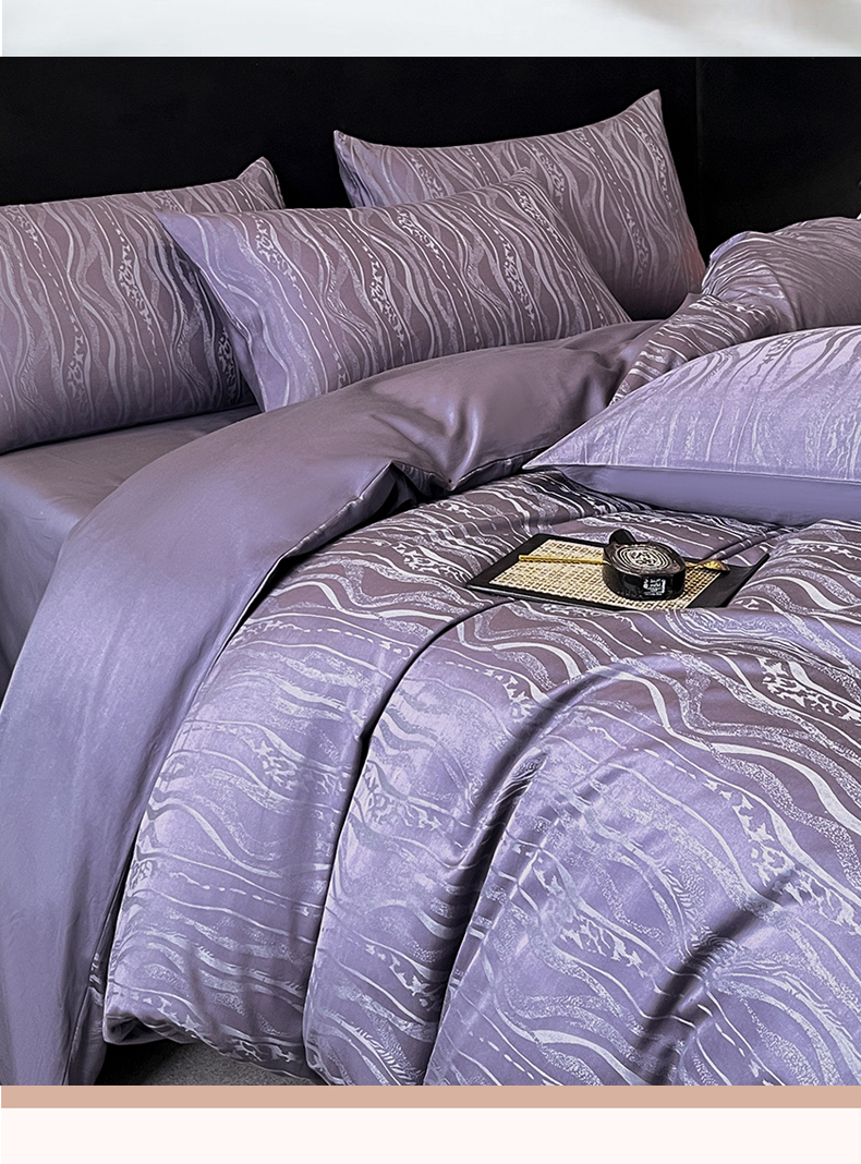 蓝米卡夫 2024新保暖-秋冬A类兰精天丝棉磨毛大提花四件套(礼盒包装) 太古里-高端紫