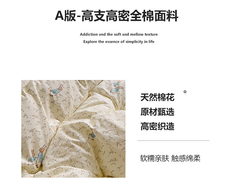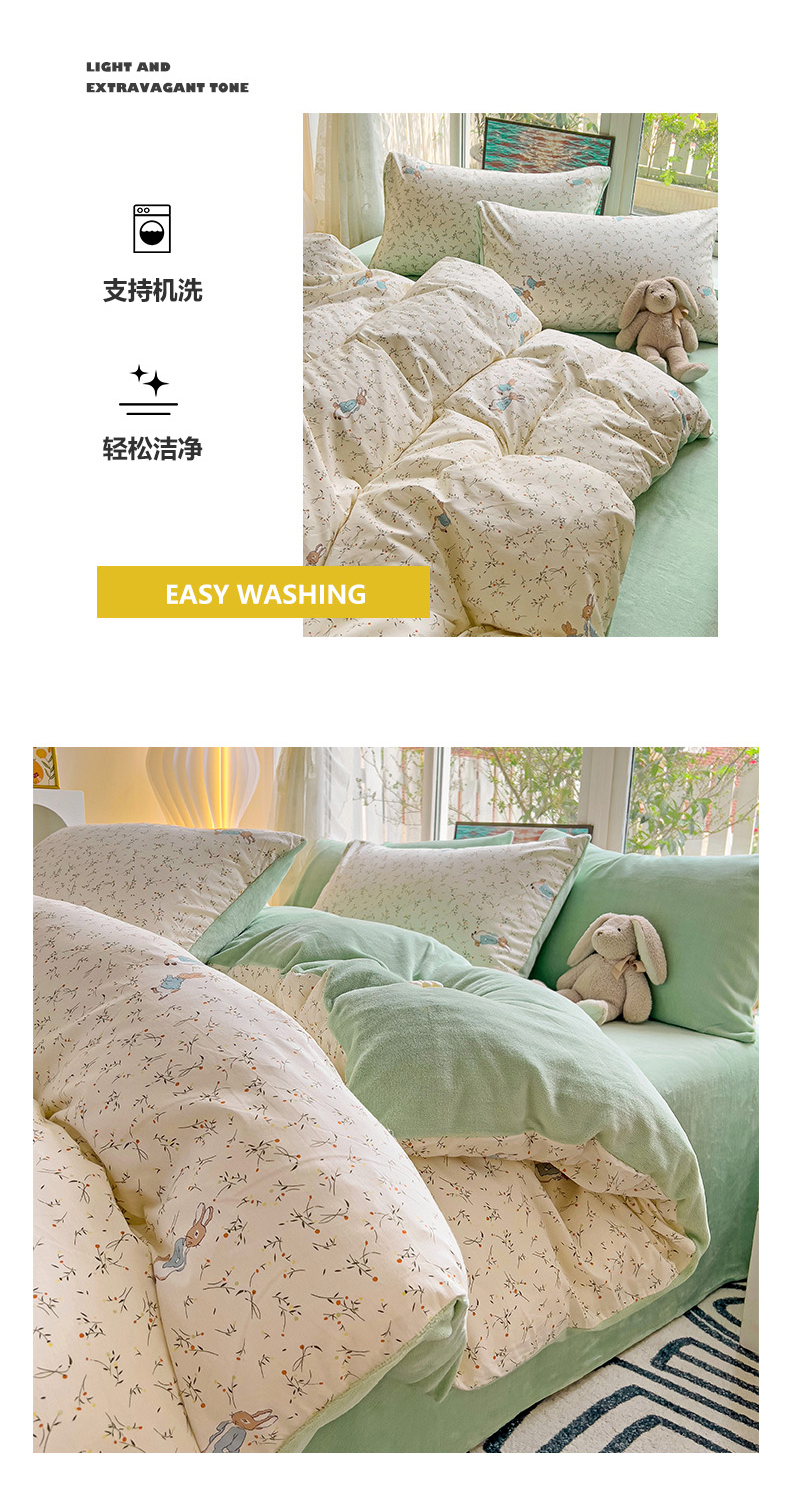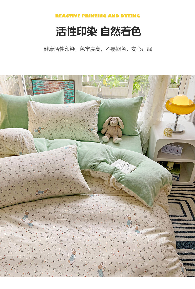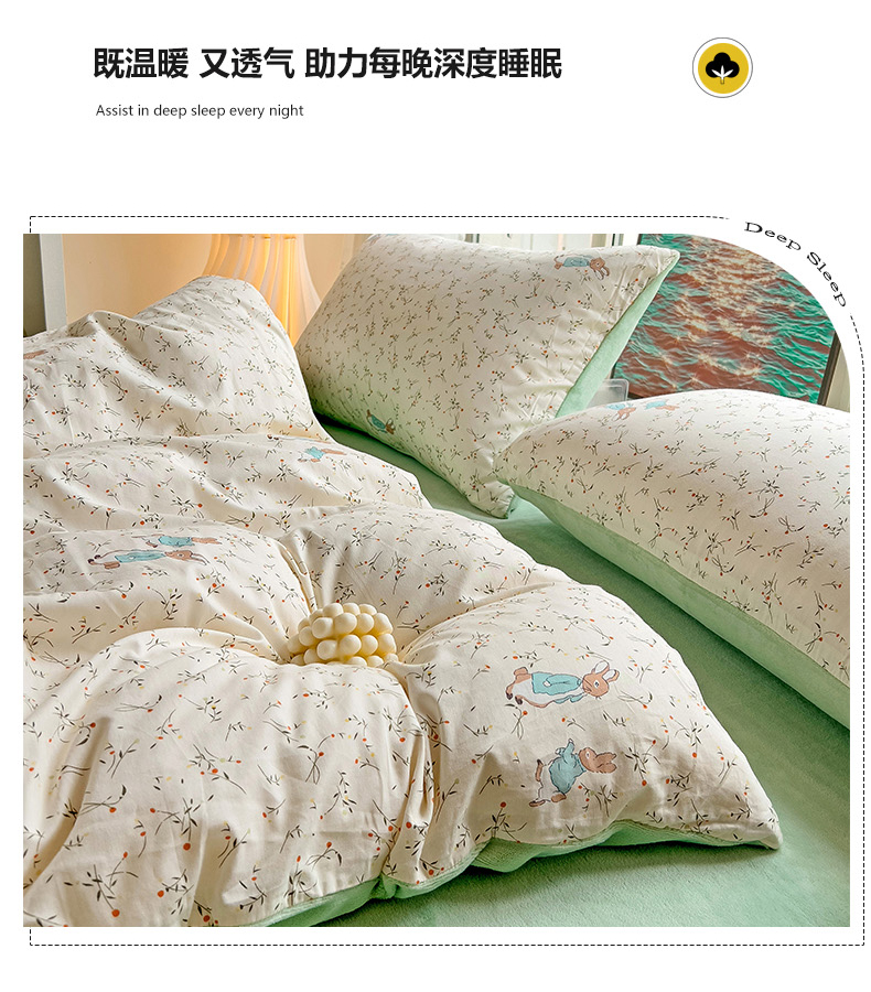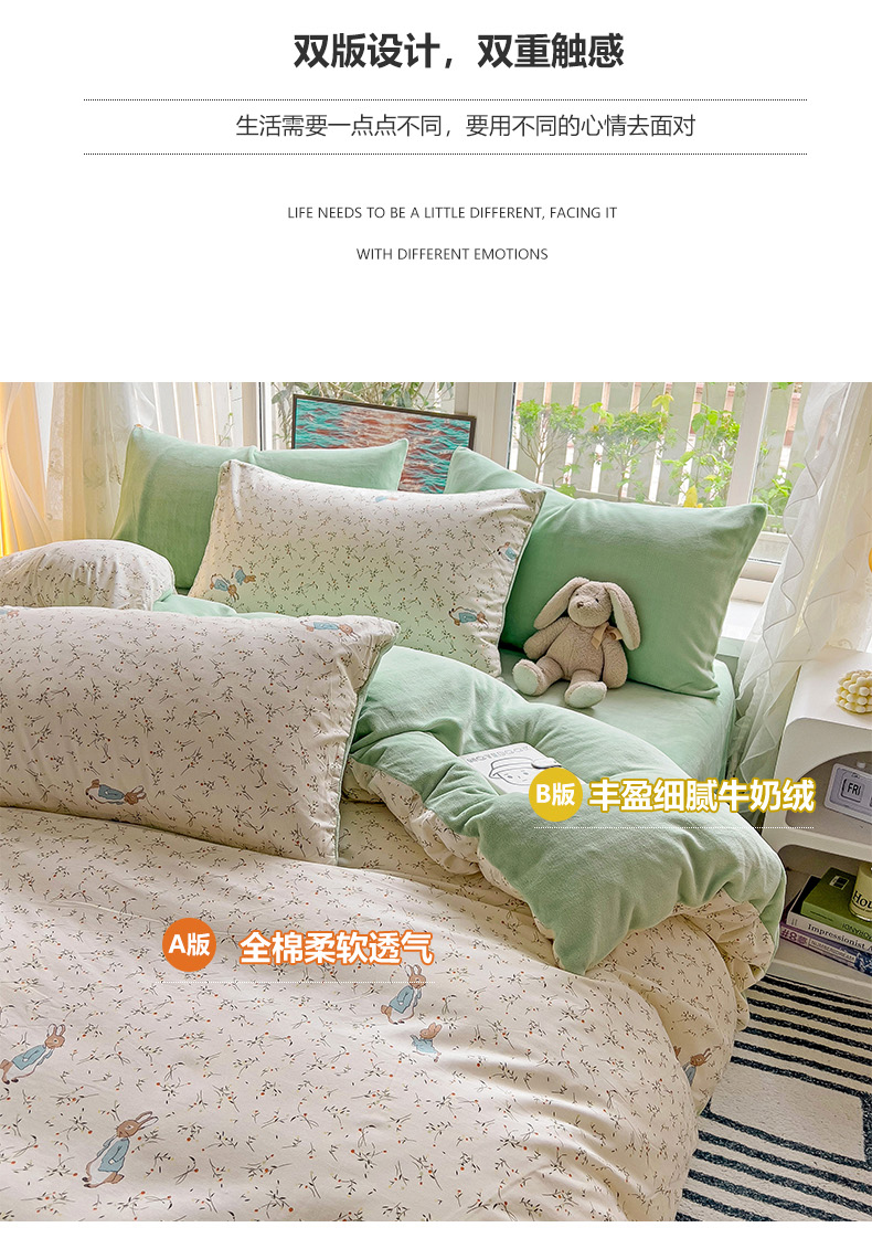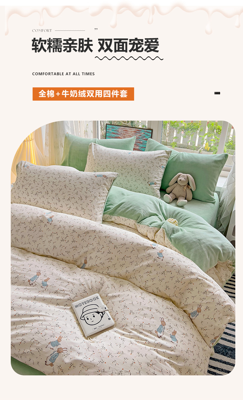 商品名称:捌月 2024新款棉加绒A版13372全棉B版高克重牛奶绒四件套直播新品 兔先生