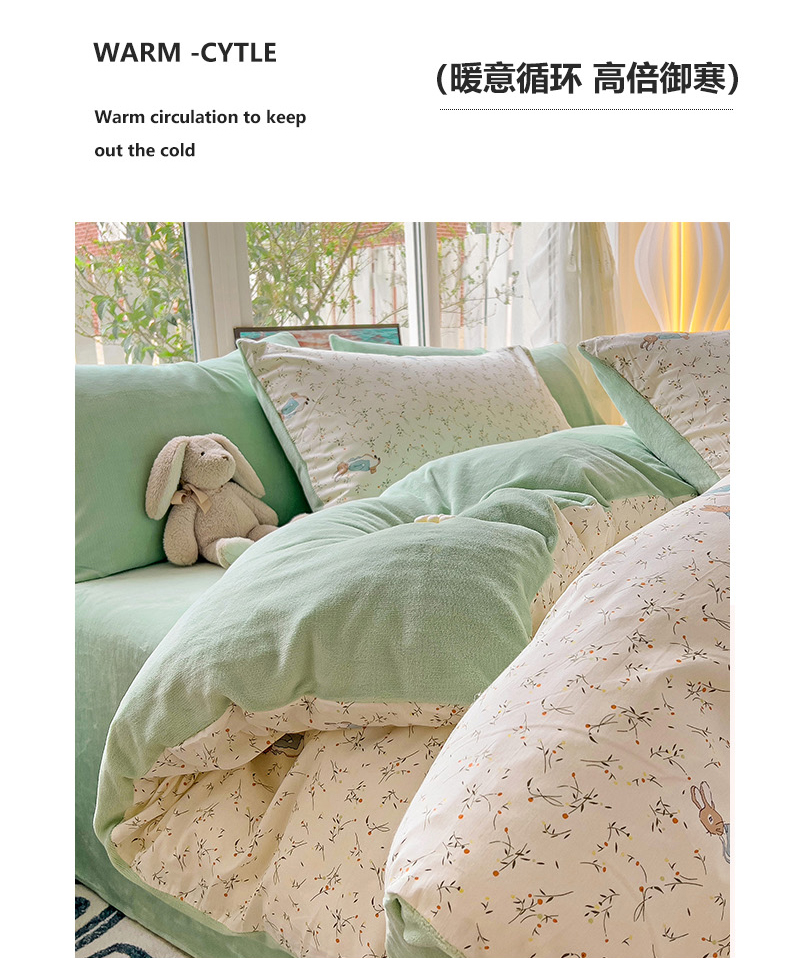 捌月 2024新款棉加绒A版13372全棉B版高克重牛奶绒四件套直播新品 兔先生