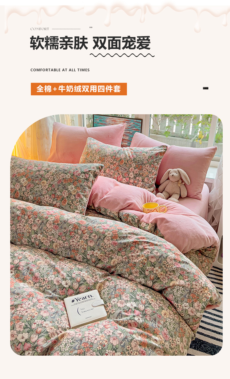 (总)捌月 2025新款棉加绒A版13372全棉B版高克重牛奶绒四件套直播新品,爱茜茜里,贝莉,春溪集,多姿多彩,朝花夕拾,茶艺师,粉诺,安冉,赫本,花花兔,花西子,花香暖语,菱格,梦华录,墨雨云间,沐辰花,浅汐,蔷薇,秋韵,苏黎世,薇薇安,汐月(棉绒),娴雅,线韵,小城故事,小时光,心语,寻觅,燕麦,樱桃花开,圆梦