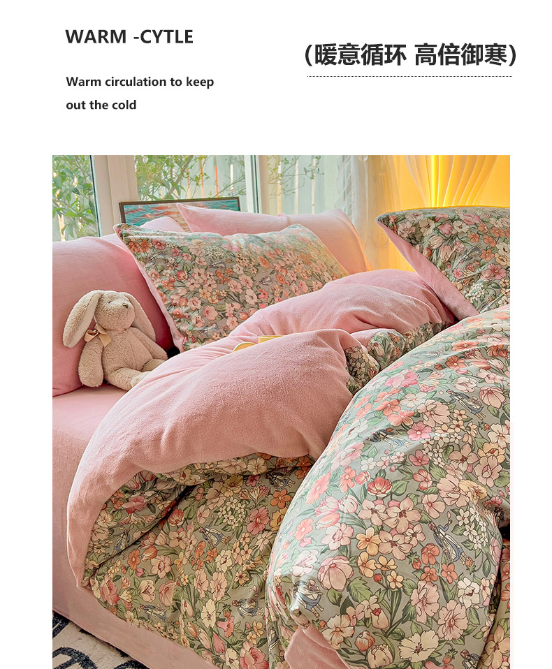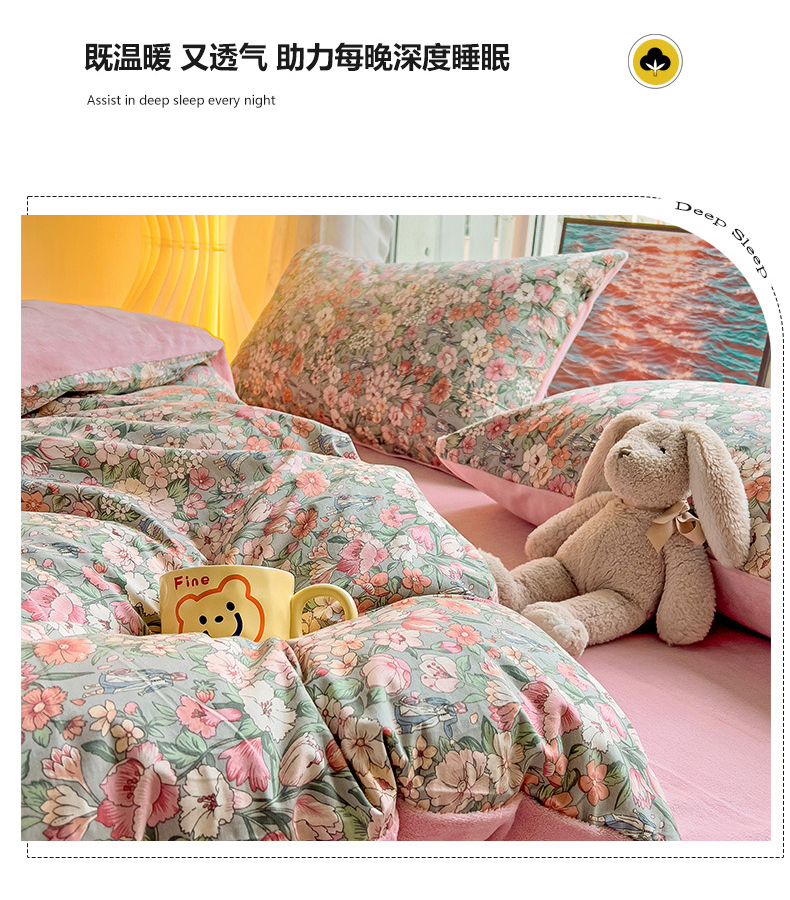 捌月 2024新款棉加绒A版13372全棉B版高克重牛奶绒四件套直播新品 多姿多彩