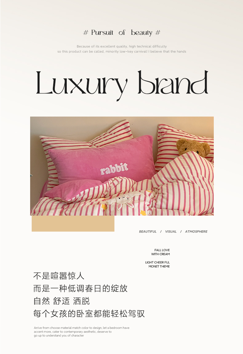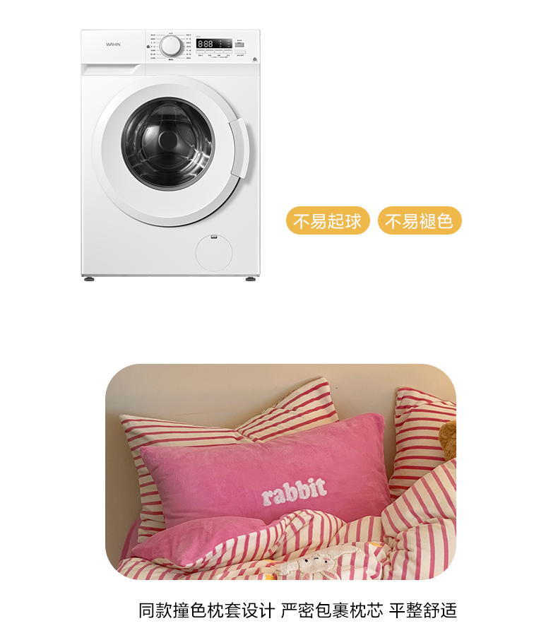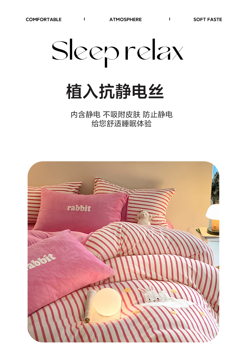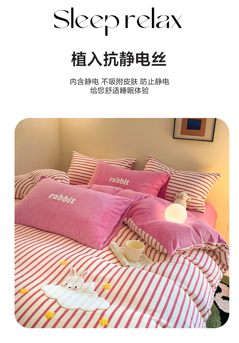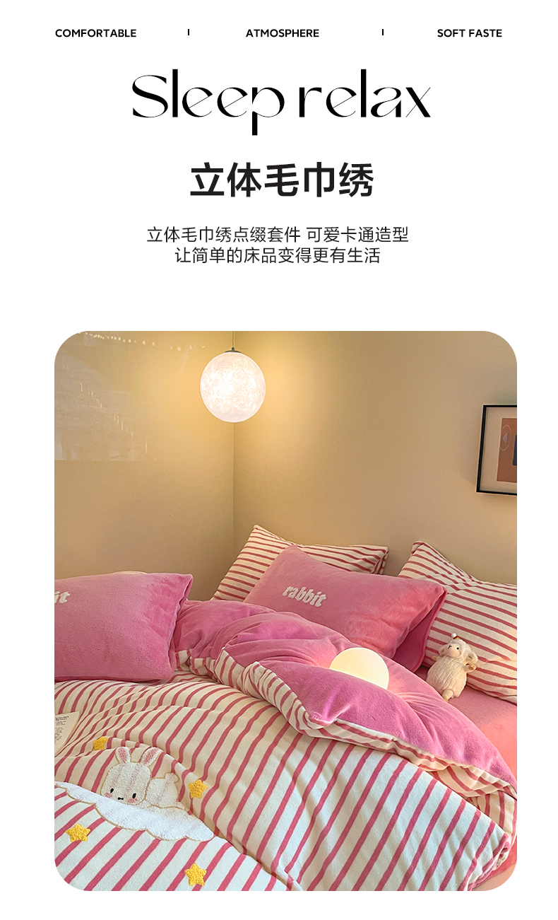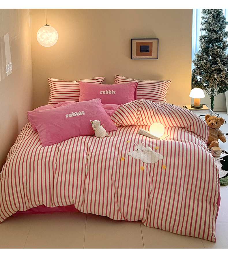 商品名称:如一 2024新款元素毛巾绣条纹牛奶绒四件套 萌萌兔