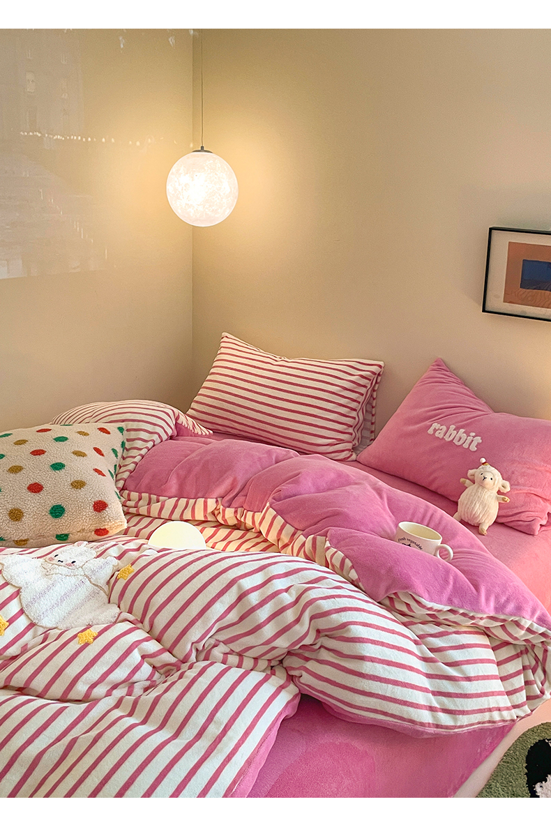 如一 2024新款元素毛巾绣条纹牛奶绒四件套 萌萌兔