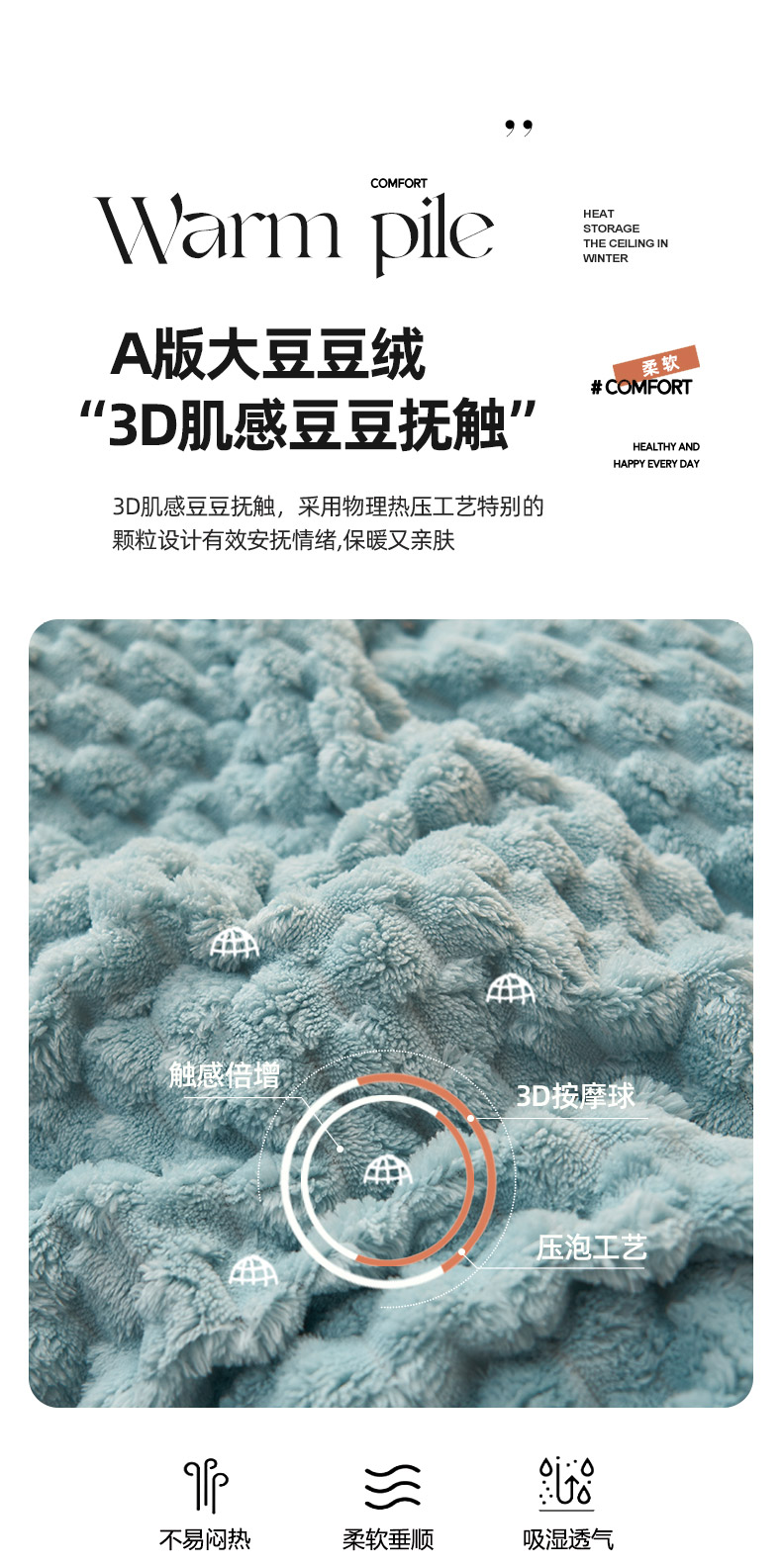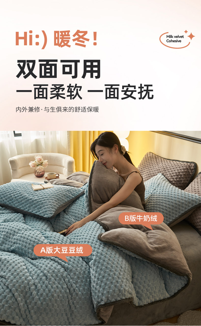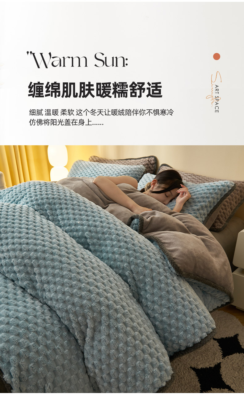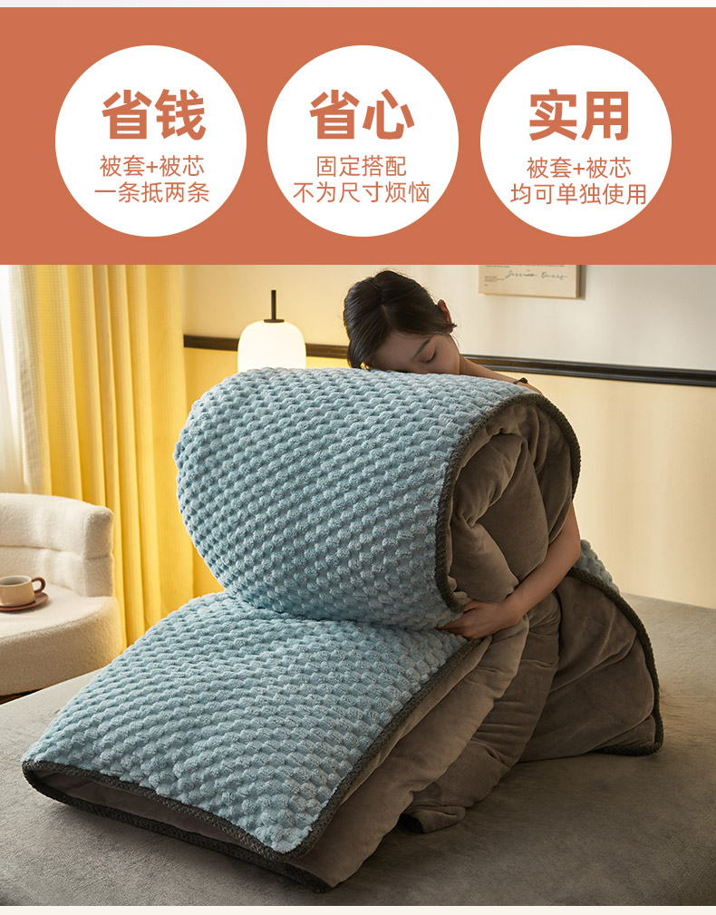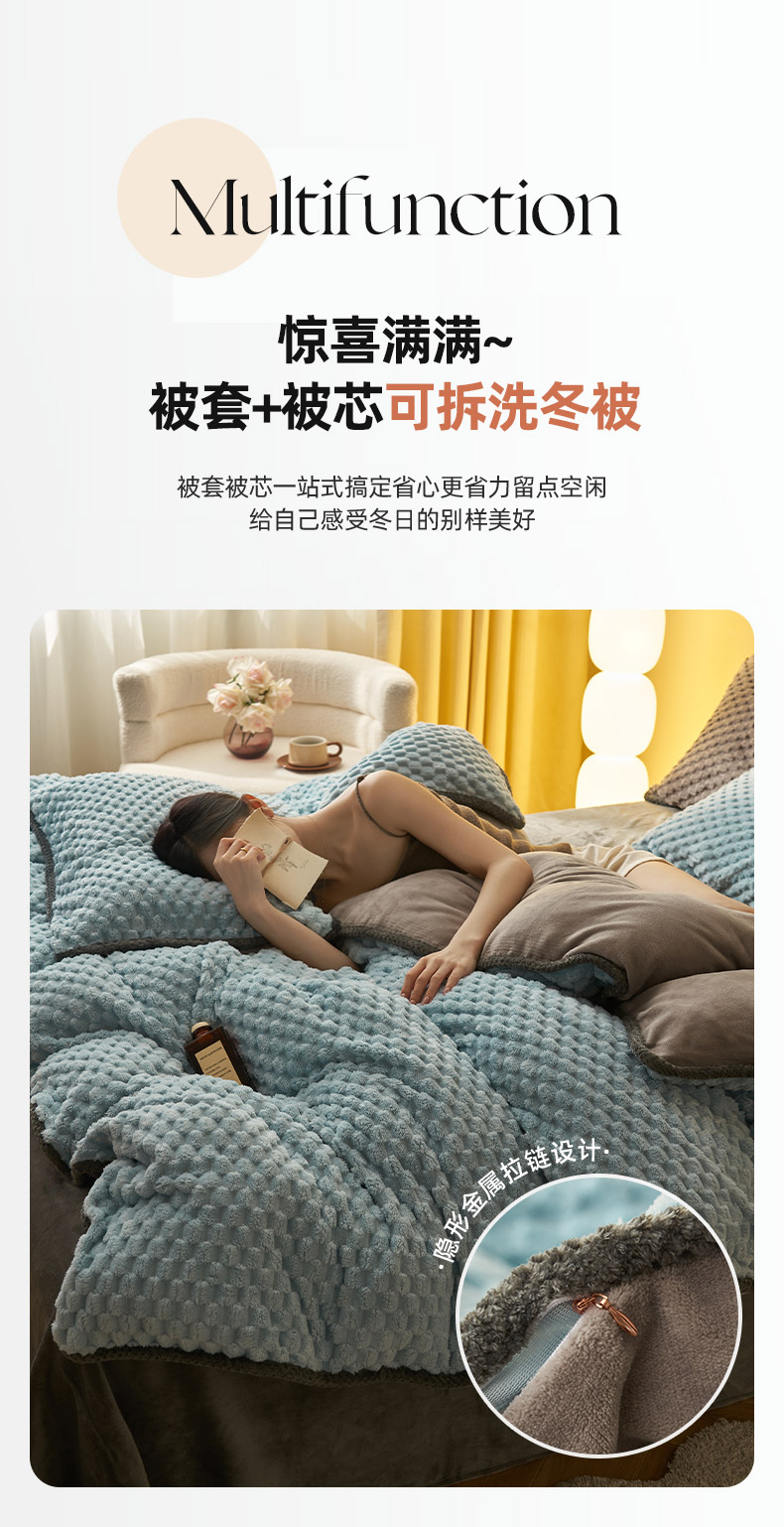 • 91家纺网 家纺一手货源 找家纺 吾诺家居 2024新款大豆豆绒可拆洗冬被 大豆豆-兰