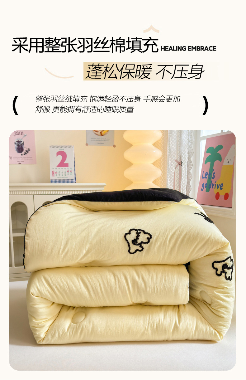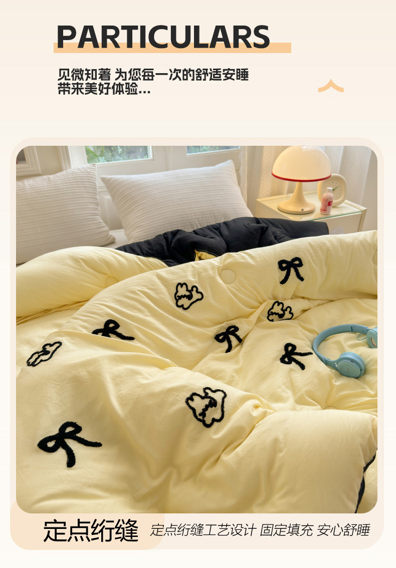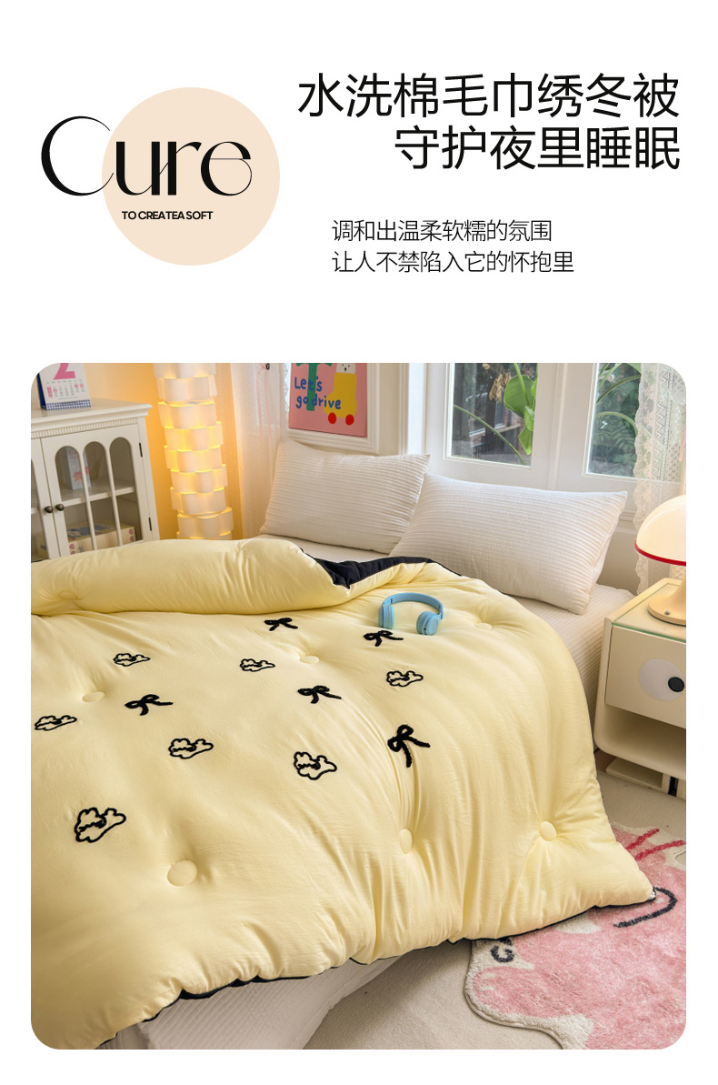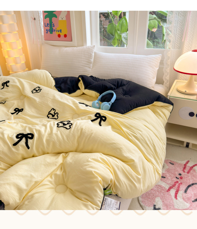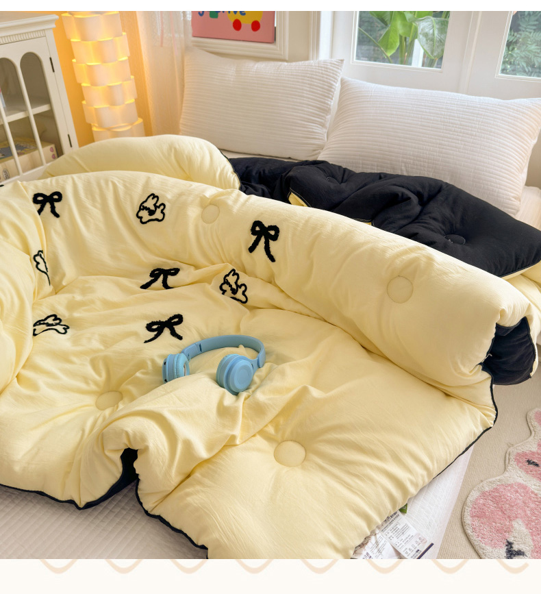 商品名称:花伞 2024新款INS小红书毛巾绣水洗棉冬被 蝴蝶结兔奶黄+黑