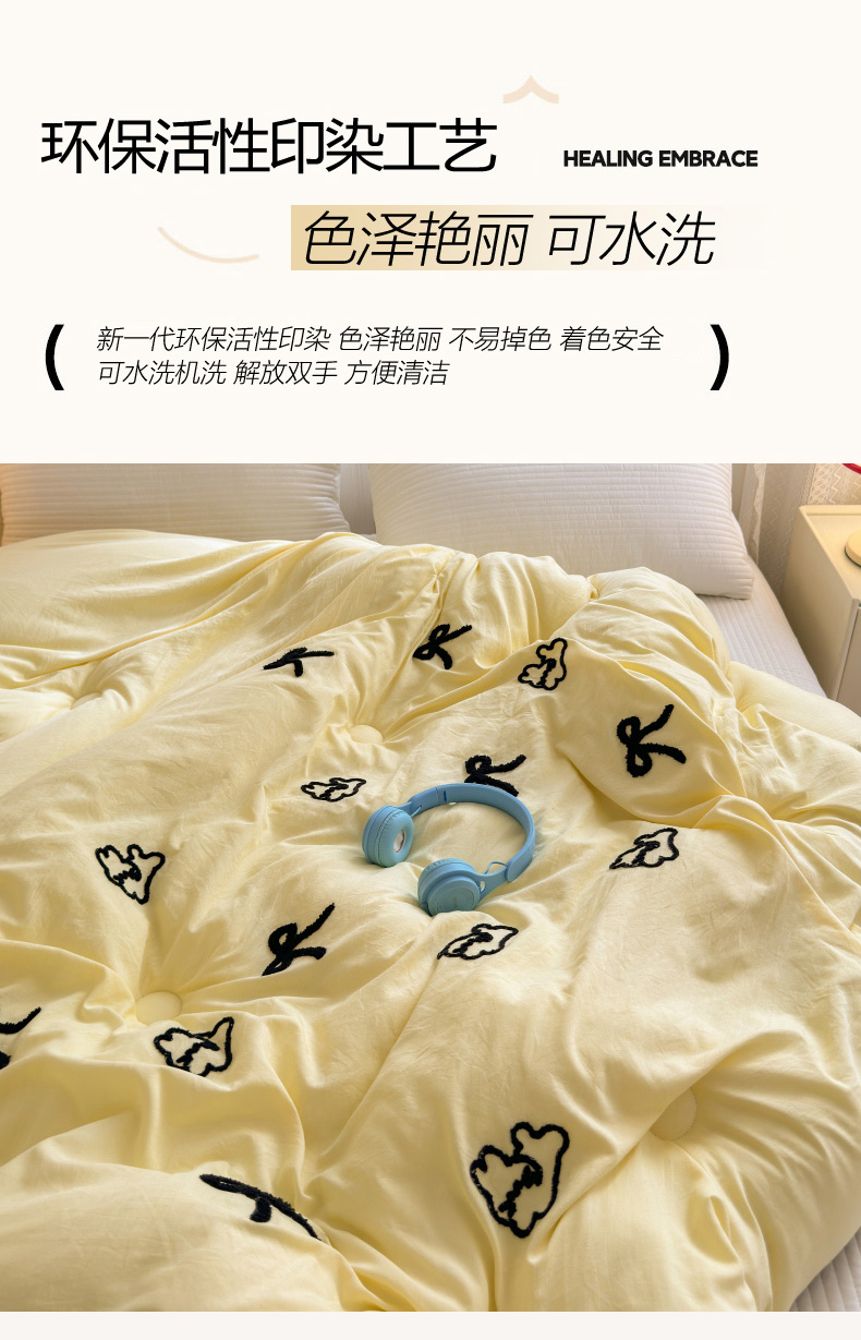 花伞 2024新款INS小红书毛巾绣水洗棉冬被 蝴蝶结兔奶黄+黑