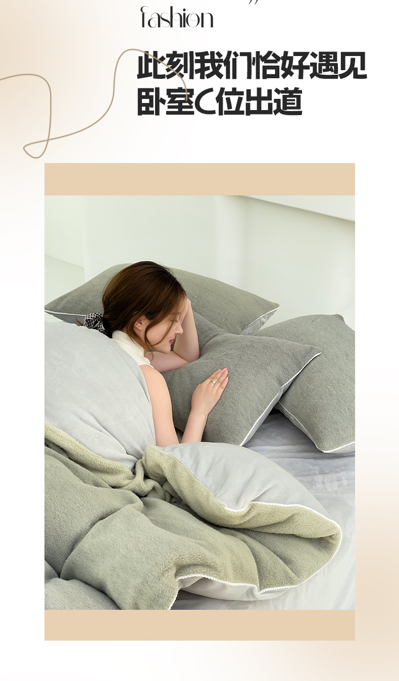 (总)米奈家居 2025新款A类高克重婴儿绒四件套-吉娜系列,淡雅粉,豆沙绿,孔雀绿,奶昔白+浅灰,浅杏色,绅士灰,西瓜粉,芋泥紫