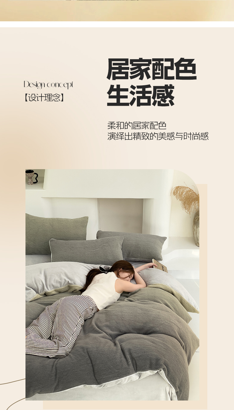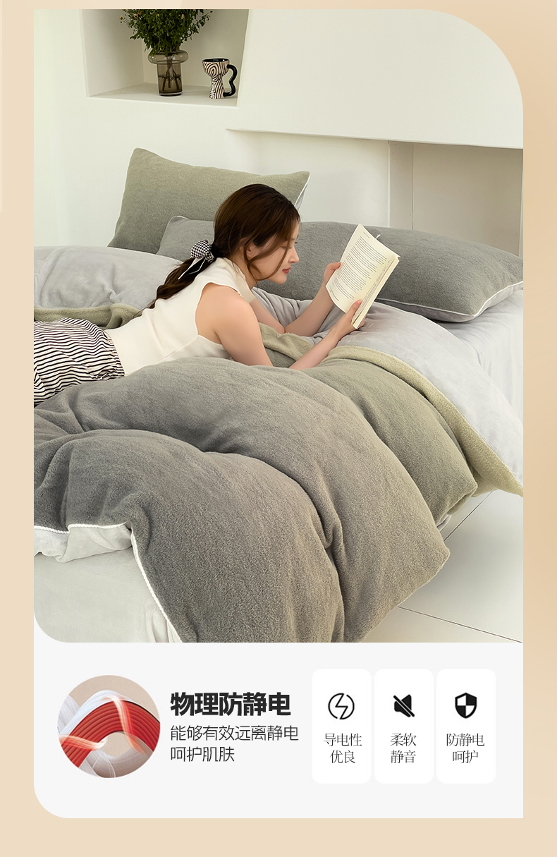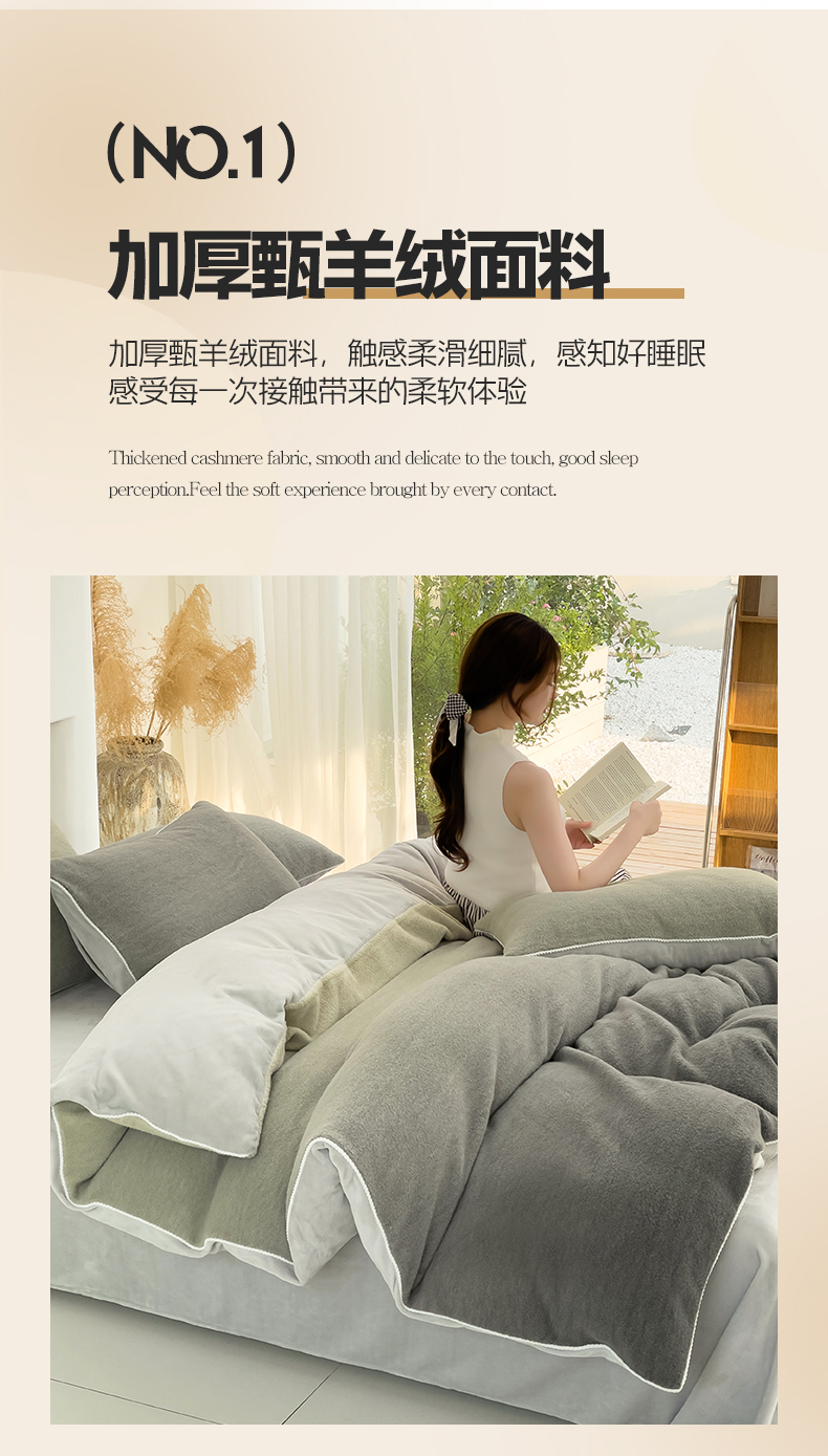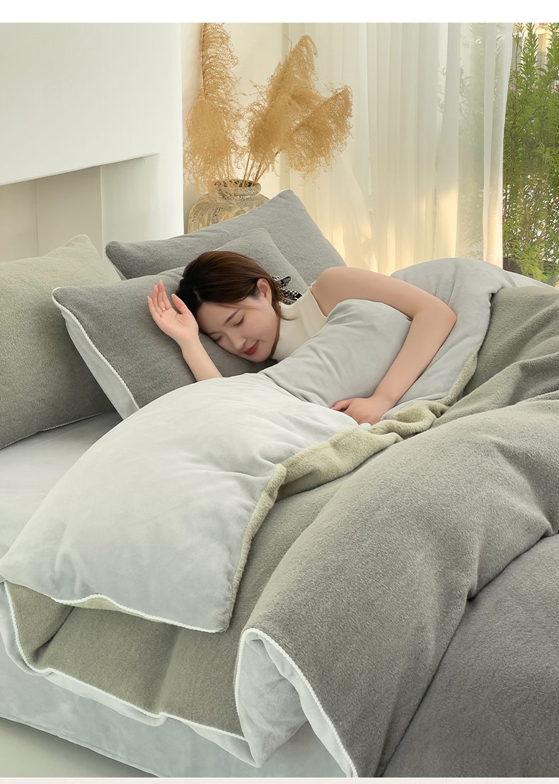 商品名称:米奈 2024新款A类加厚甄羊绒四件套 甄羊绒渐变灰色