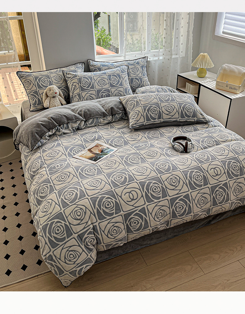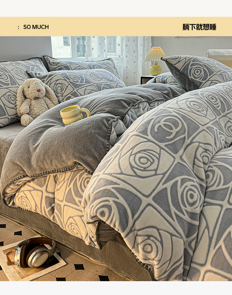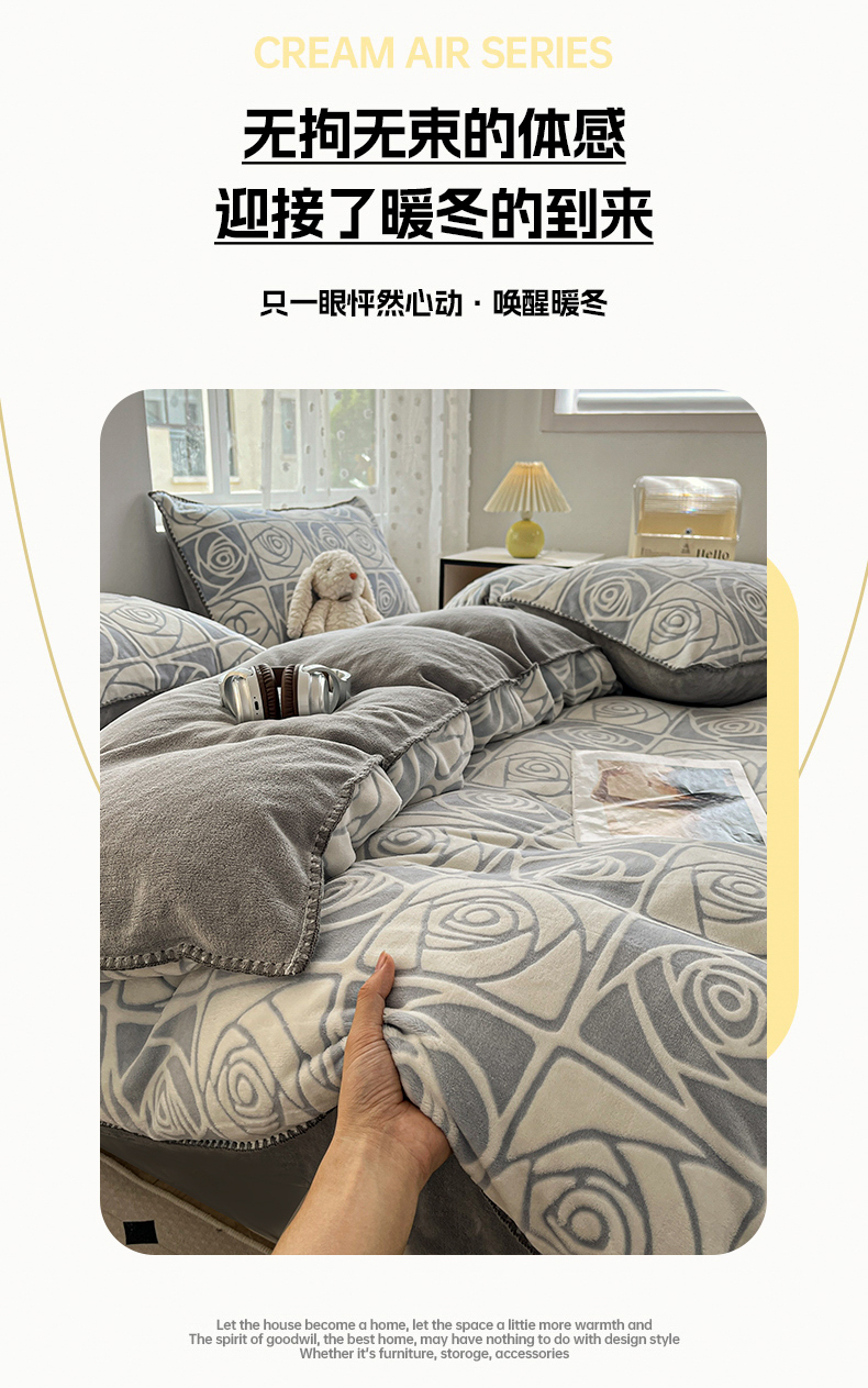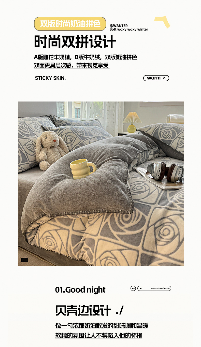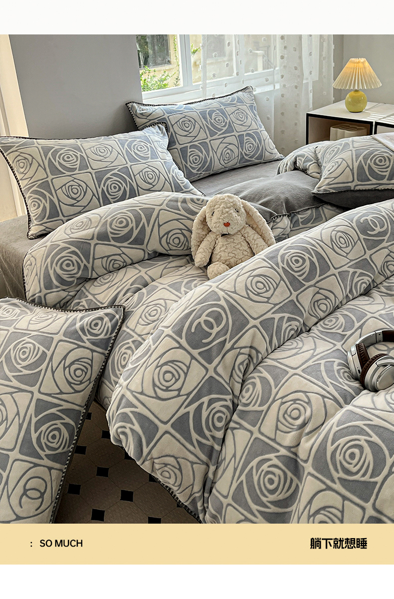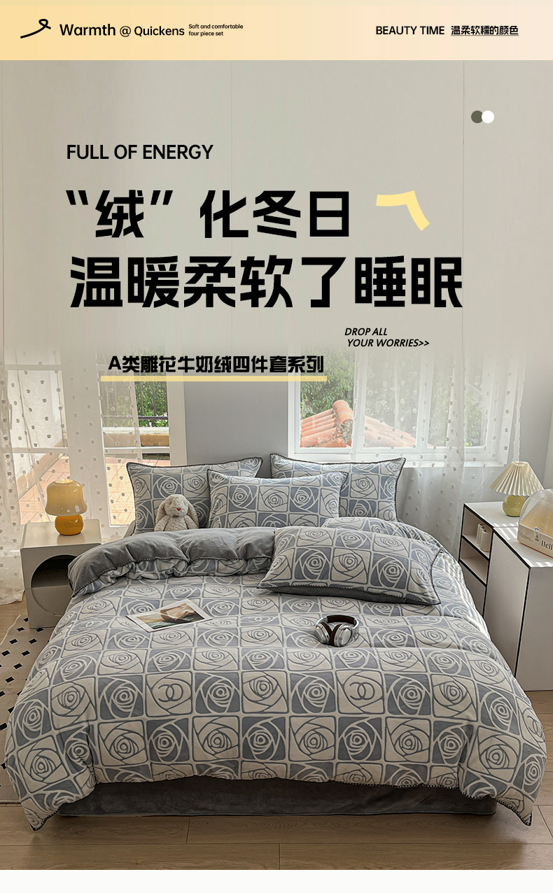 当前位置: 91家纺网 > 商品网购 > 床品套件 > 四件套 > 牛奶绒四件套 > 晚依家纺 2024新款230g全消光牛奶绒四件套 陌上花开-蓝灰